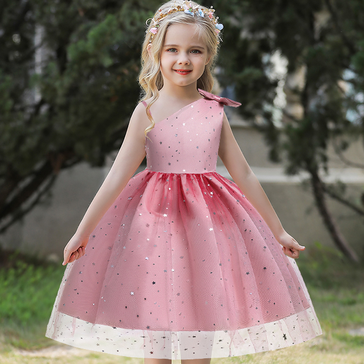 Kids Girls Sweet Elegant Bowknot Mesh Catwalk Gradient Sequin Trail tutu Skirt Wholesale