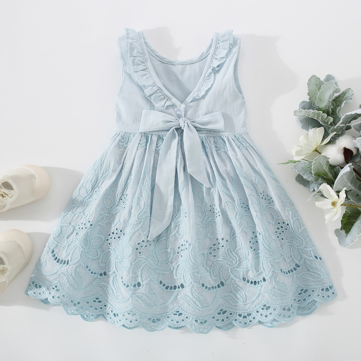 Toddler Girls Sweet Solid Color Bow Knot Decor Dress Wholesale