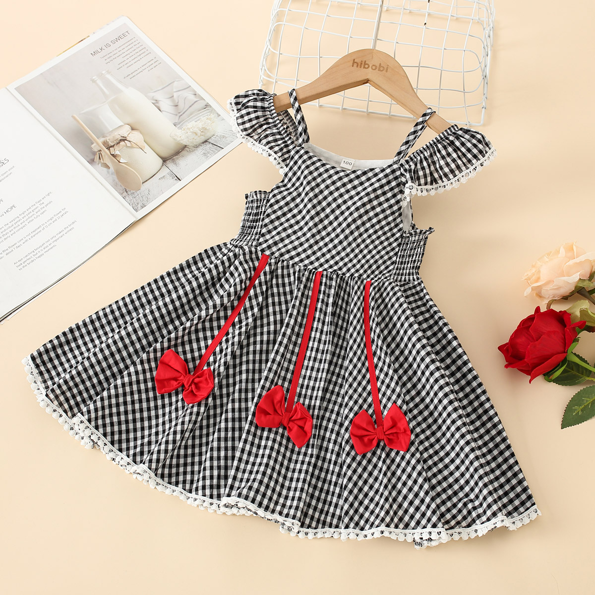 Toddler Girls Cotton Plaid Bowknot Patchwork Dress Wholesale