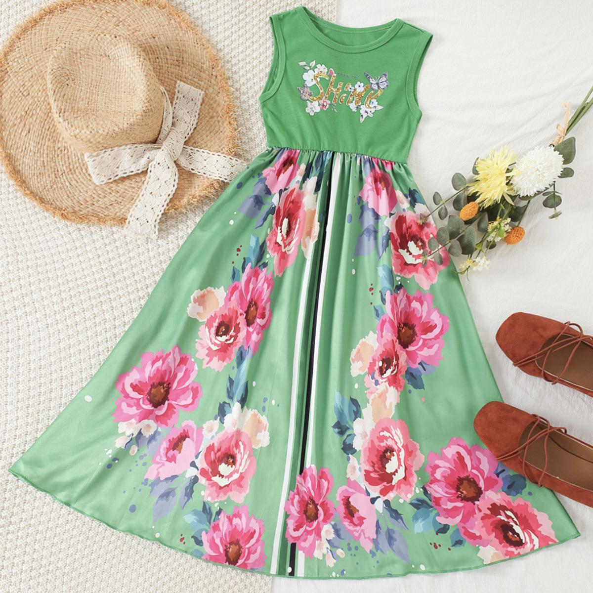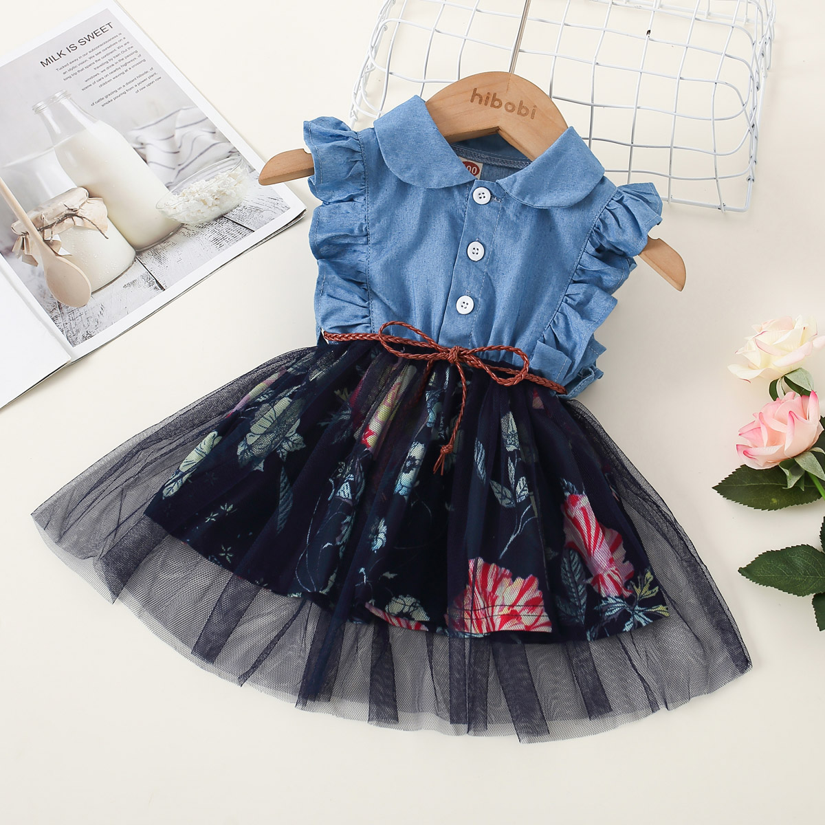 Kid Girl Rose Print Dress Wholesale