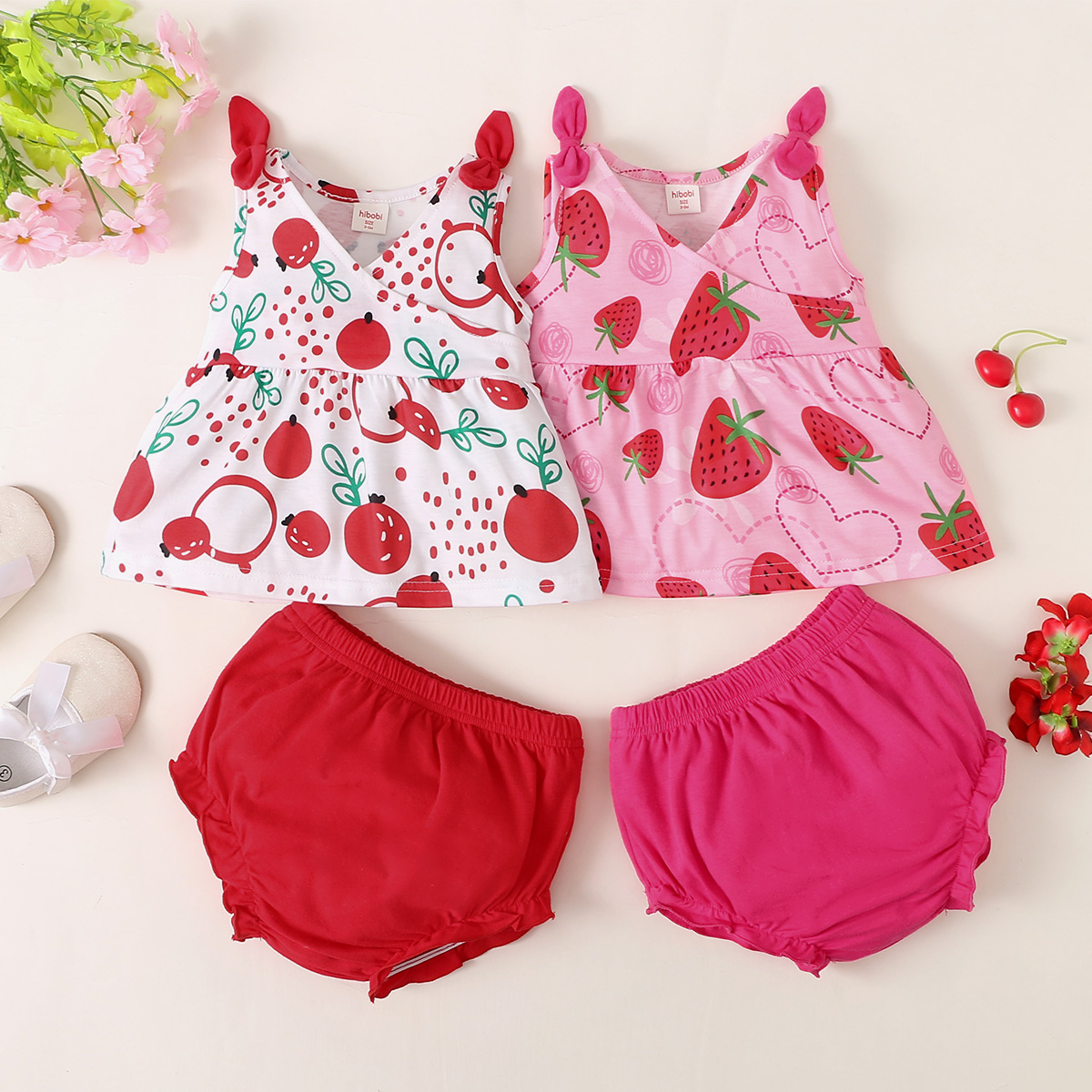 hibobi Girl Baby Cute Strawberry Camisole Suit Wholesale