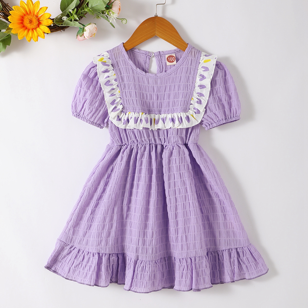 Toddler Girl Sweet Solid Color Heart-shaped Pattern Dress Wholesale