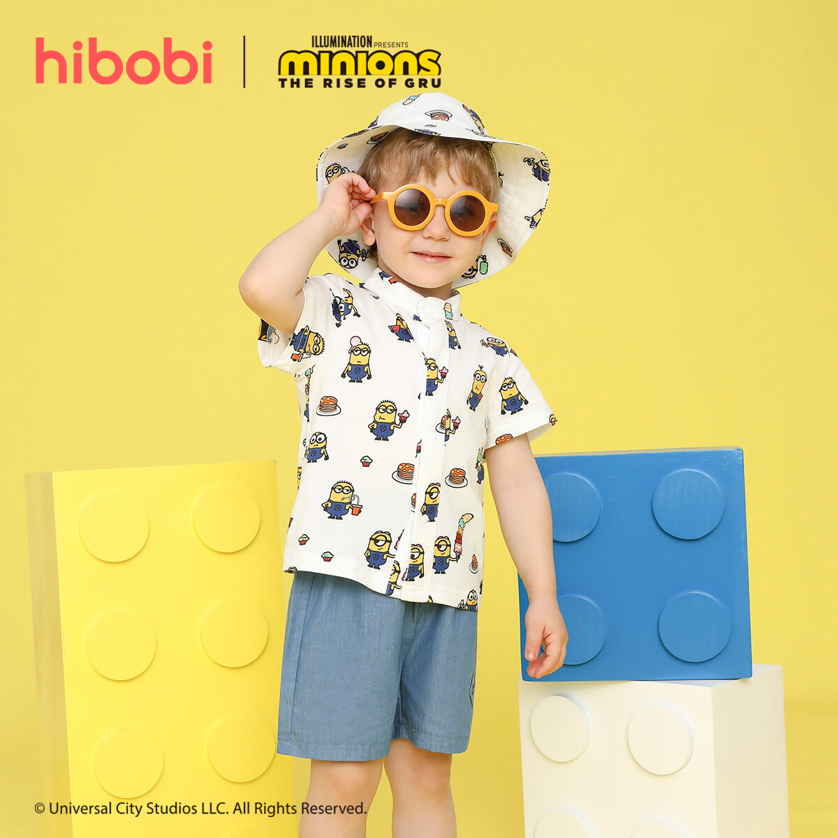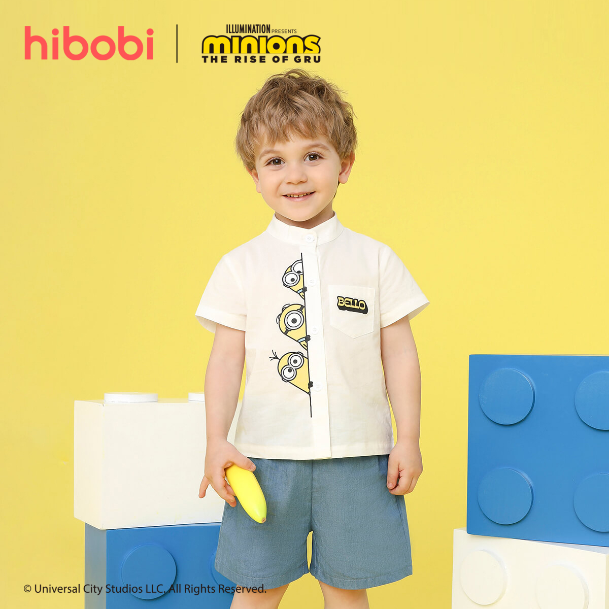 Minions ×Toddler Boy Printed White Shirt & Denim Shorts Set Wholesale