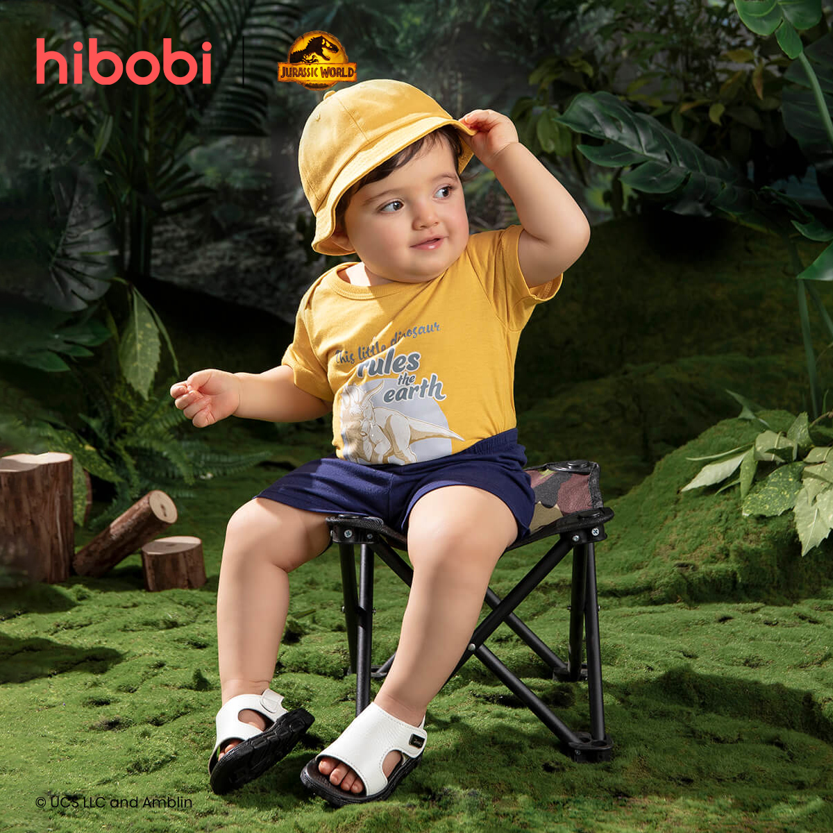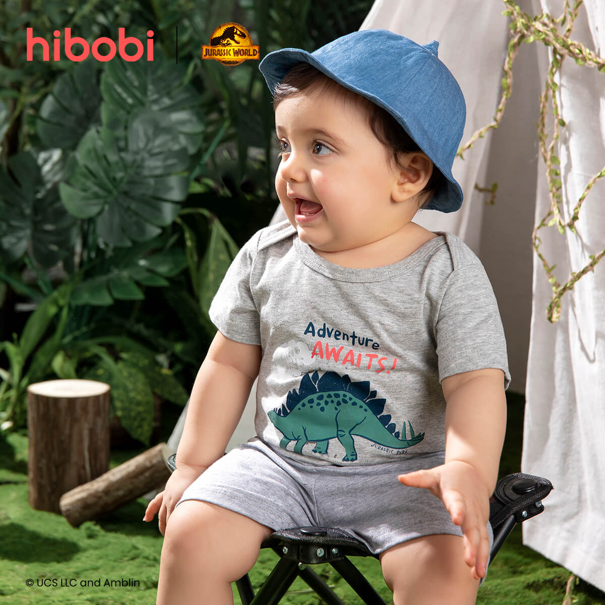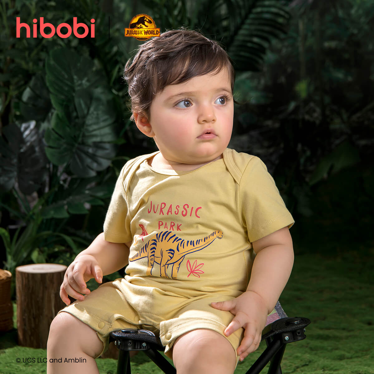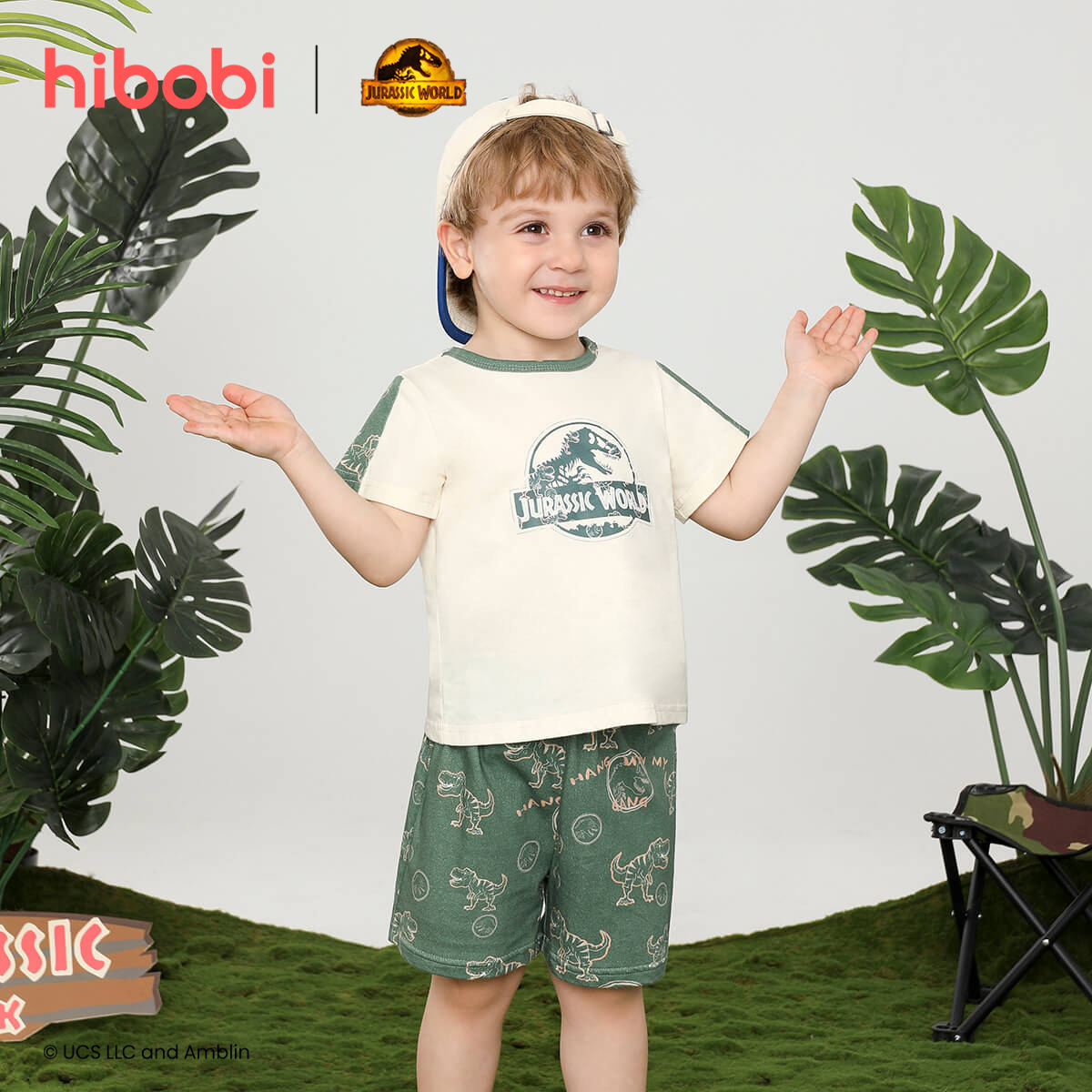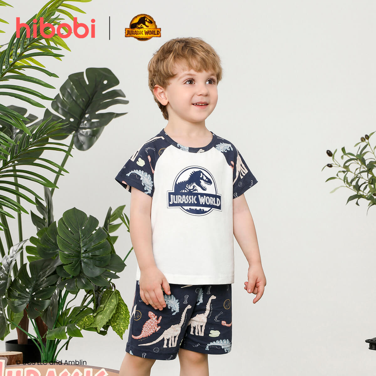 hibobi×Jurassic Baby Boy Cartoon Print Short Sleeve Cotton Jumpsuit&Shorts Wholesale