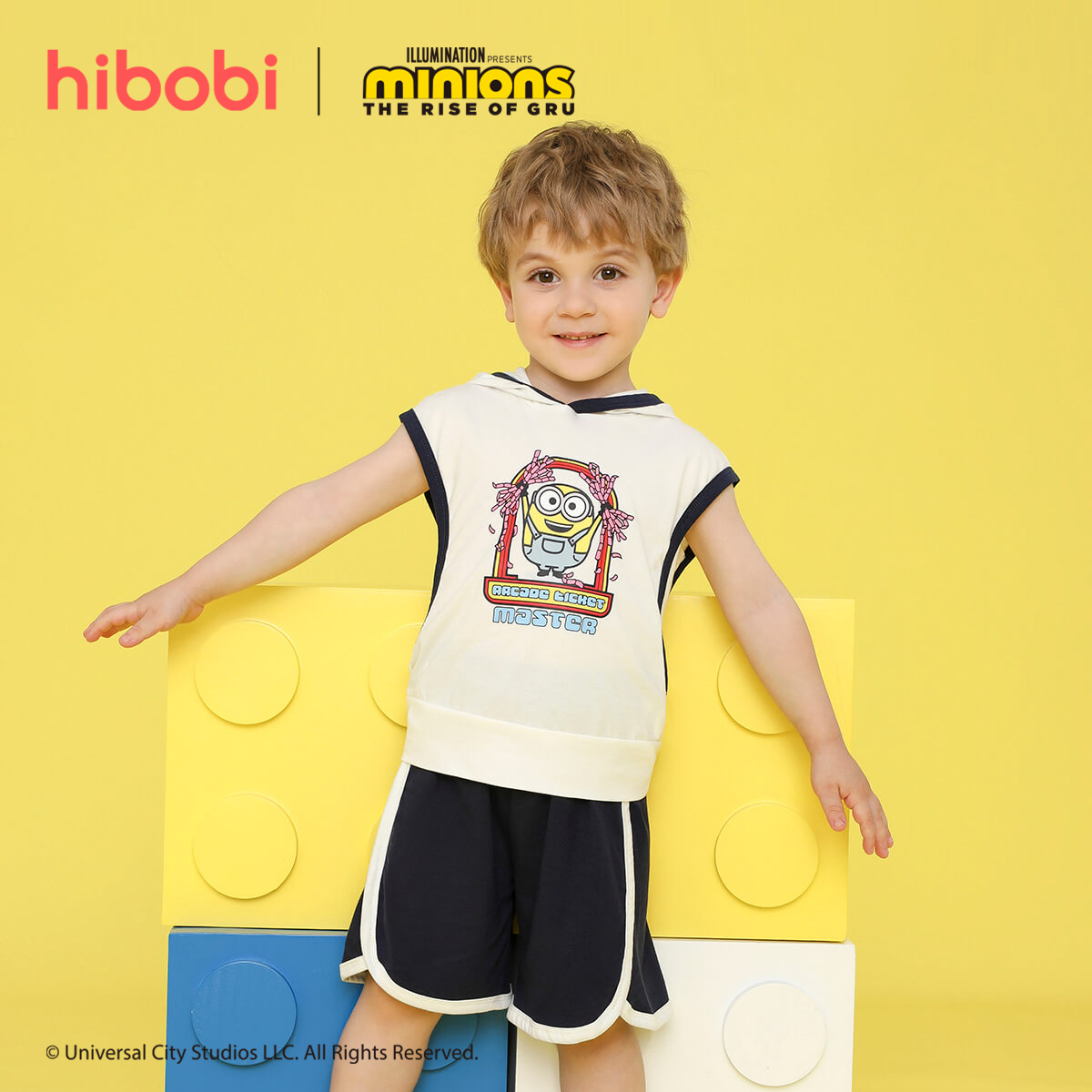Minions × toddler boy Printed White Patchwork Hooded Sleeveless Suit Wholesale