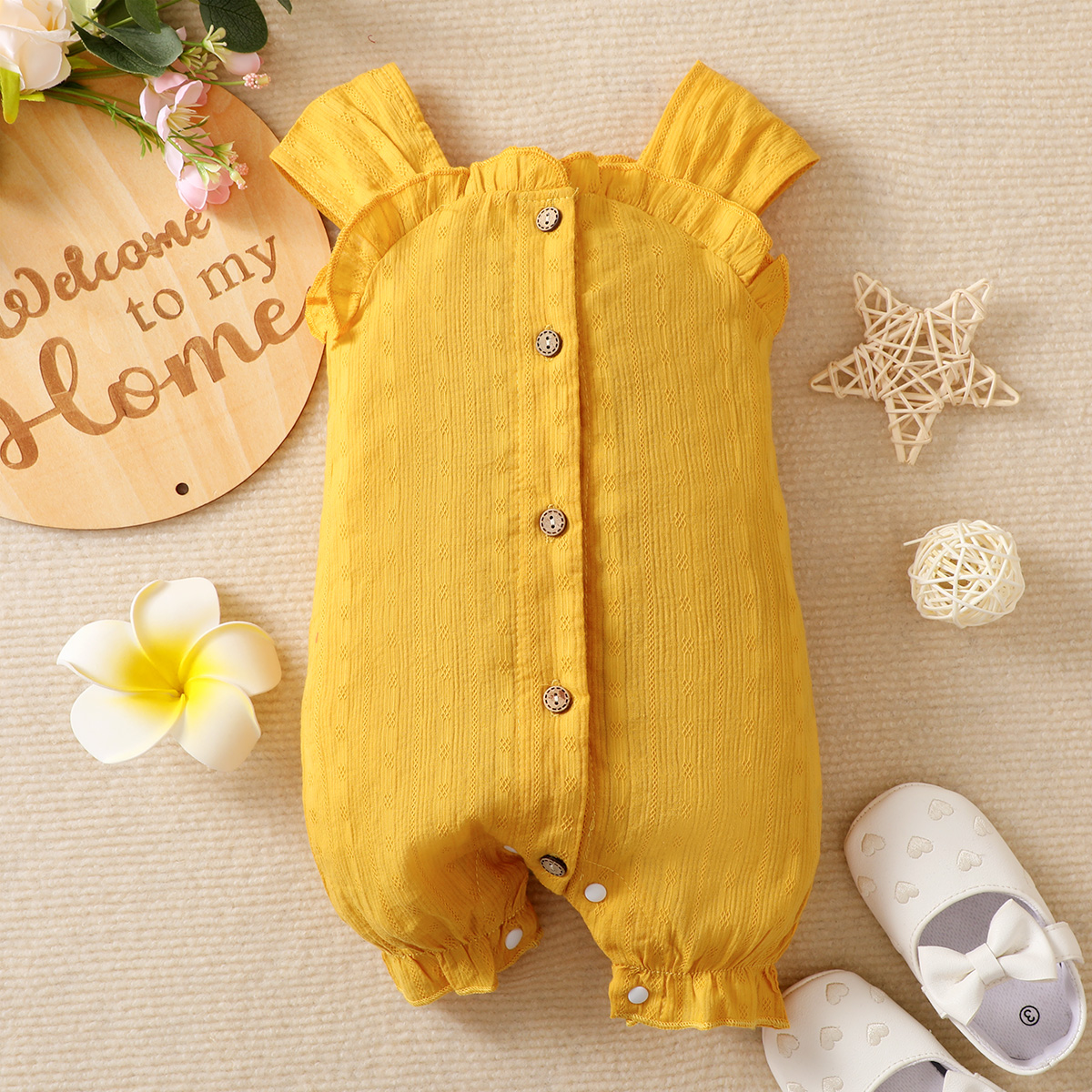 hibobi Baby Girl Solid Color Pure Ruffle Cotton Bodysuit Wholesale