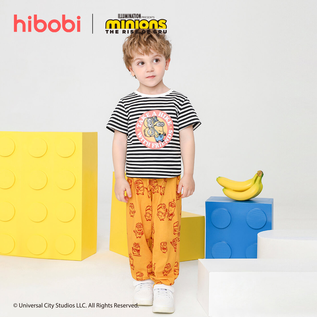 Minions × Toddler Boy Printed Black & White Striped Top & Yellow Trousers Set Wholesale