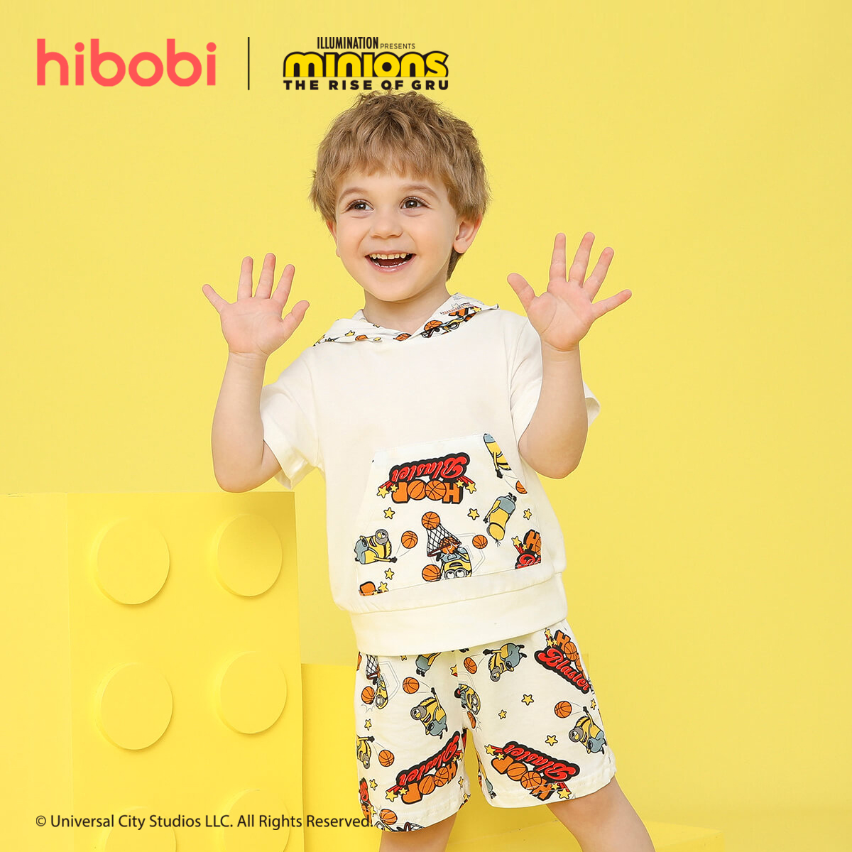 Minions × toddler boy Printed White Patchwork Hooded Pocket Suit Wholesale