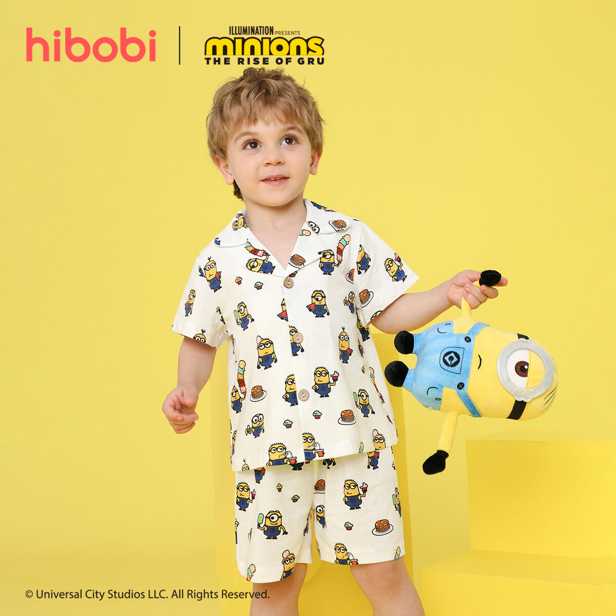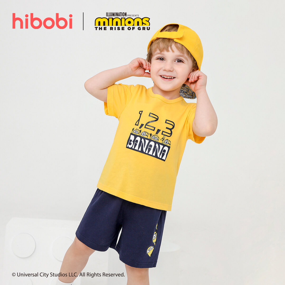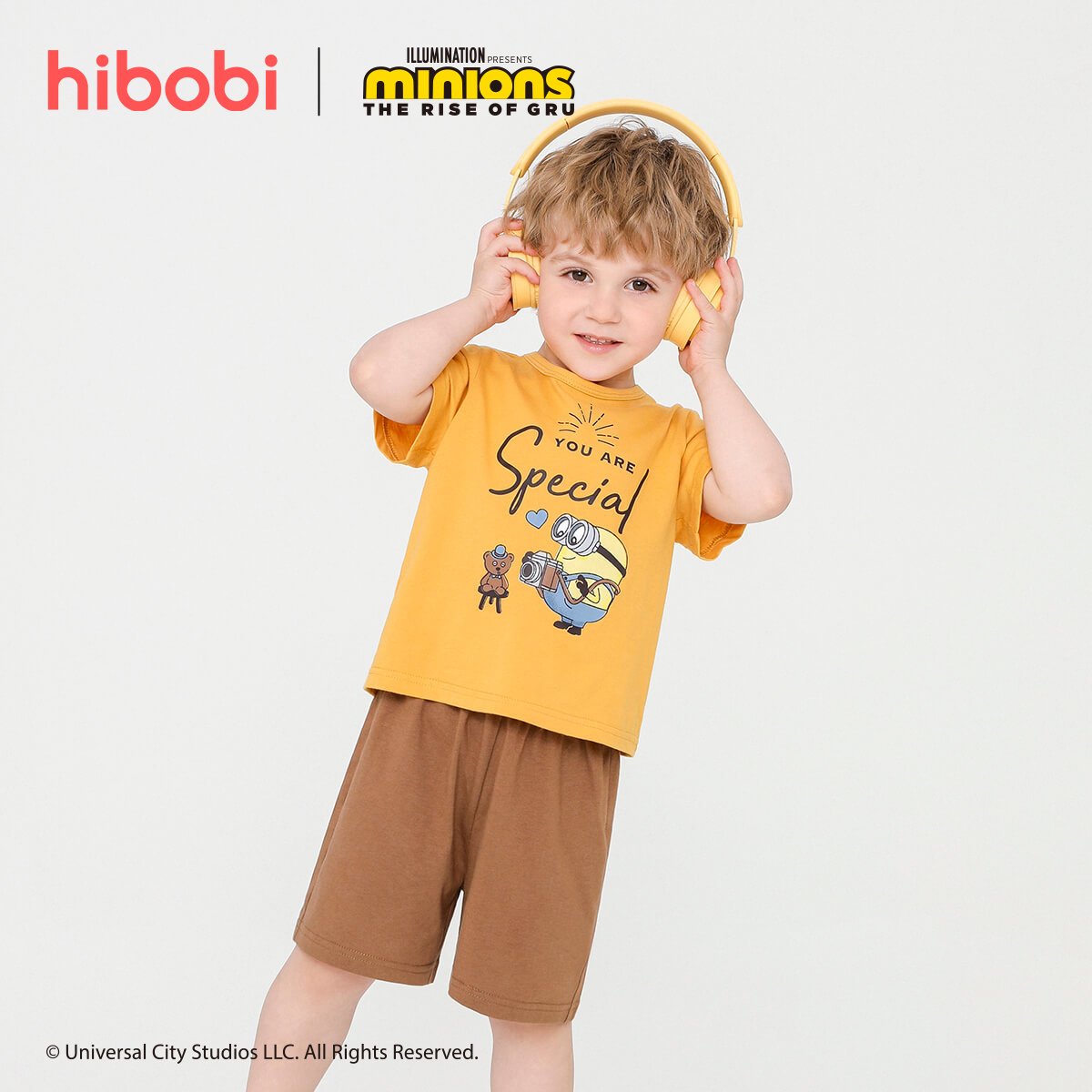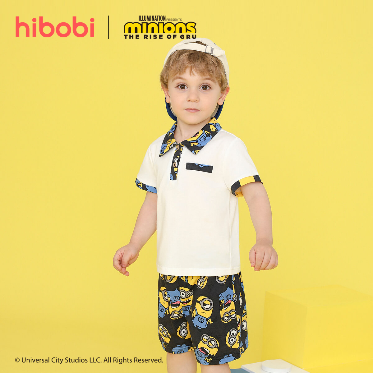 Minions × toddler boy Printed Yellow Top Black Shorts Set Wholesale
