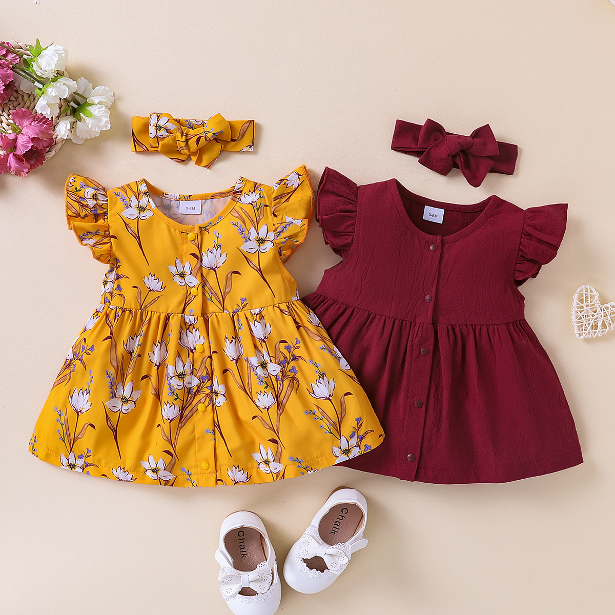 Baby Girl Floral Print Dress & Headband Wholesale