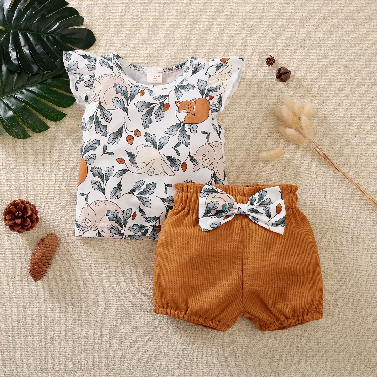 hibobi Girl Baby Sleeping Animal Print Bow Set Wholesale