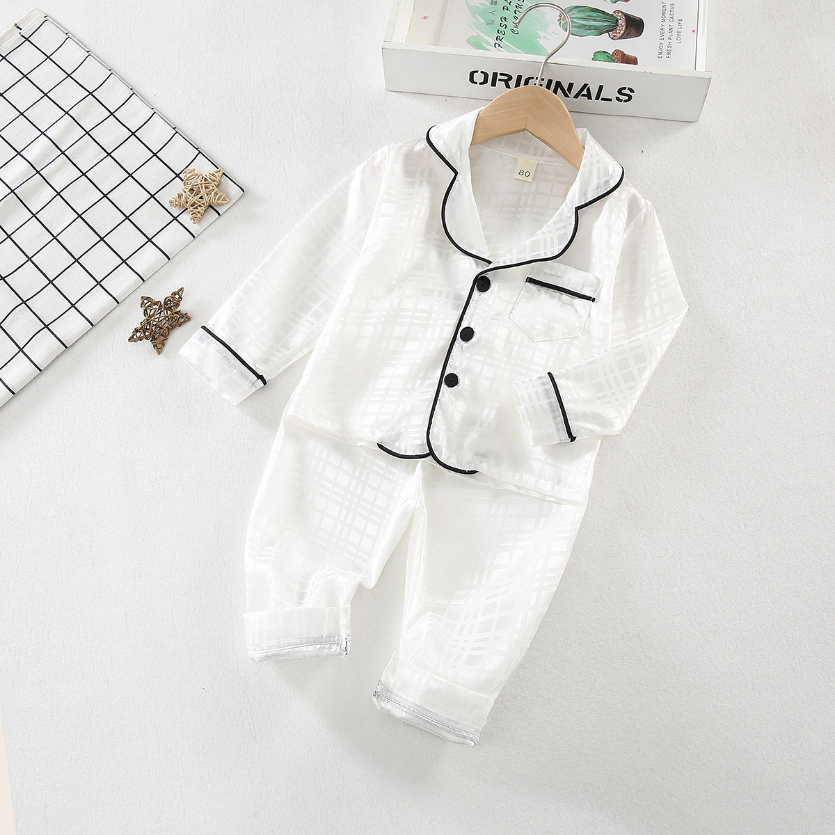 Toddler boy Solid Imitation Silk Pajamas Top & Short Wholesale