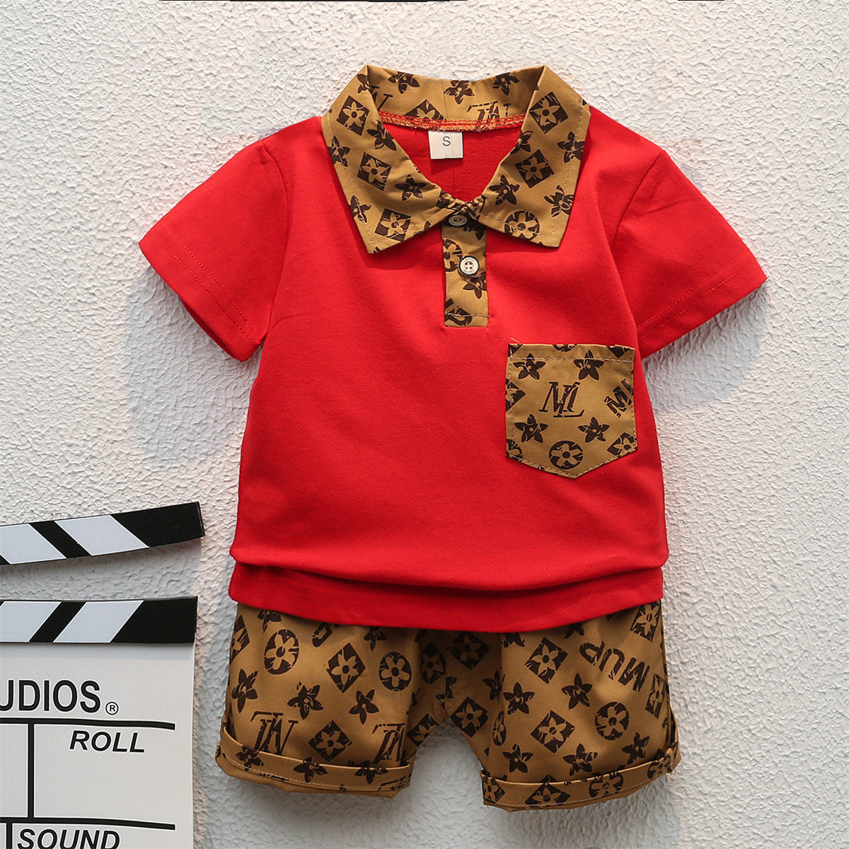 Toddler Boys Imitation Brand Printting Short Sleeve Top & Shorts Wholesale