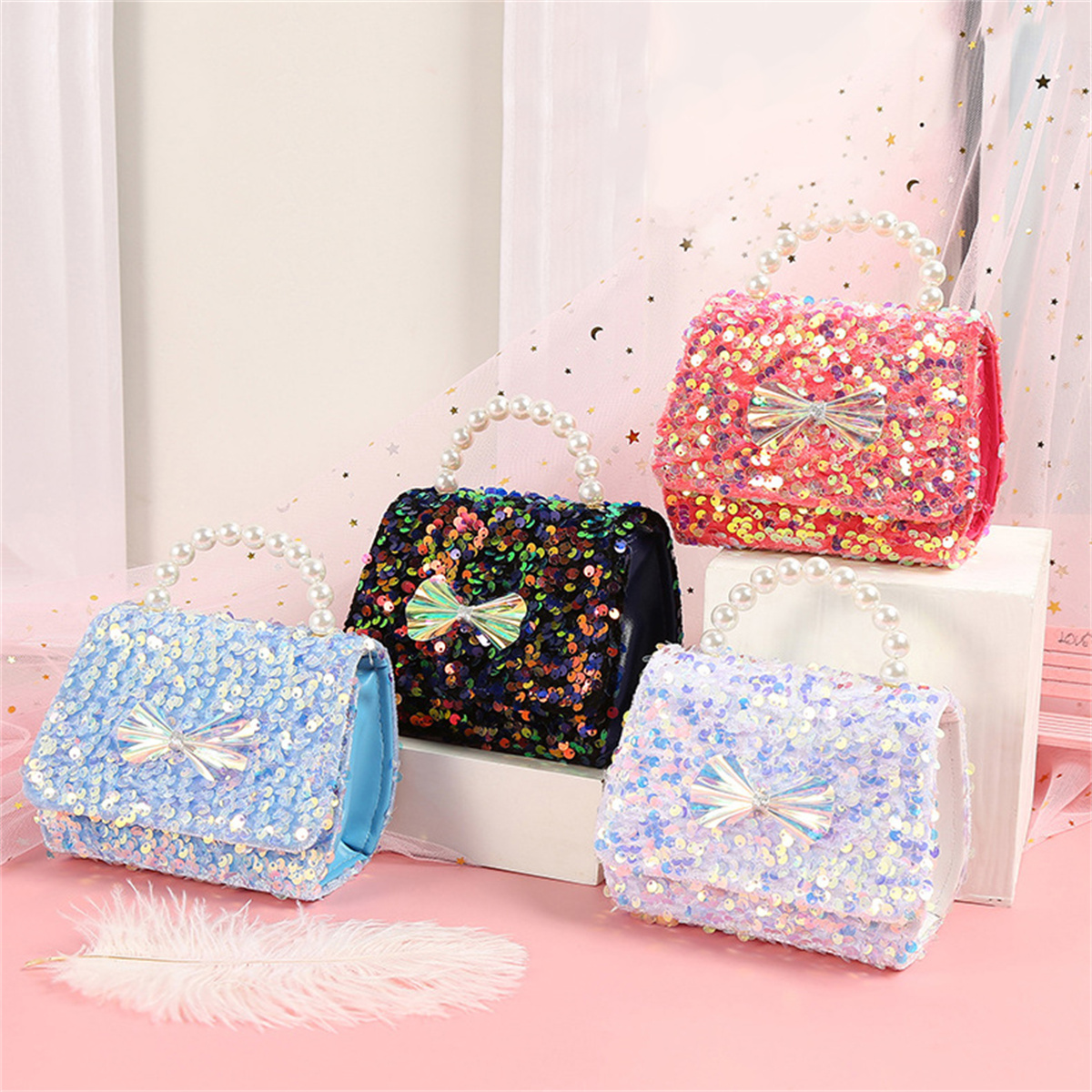 Kid Glitter Sequin Bow Crossbody Bag Wholesale