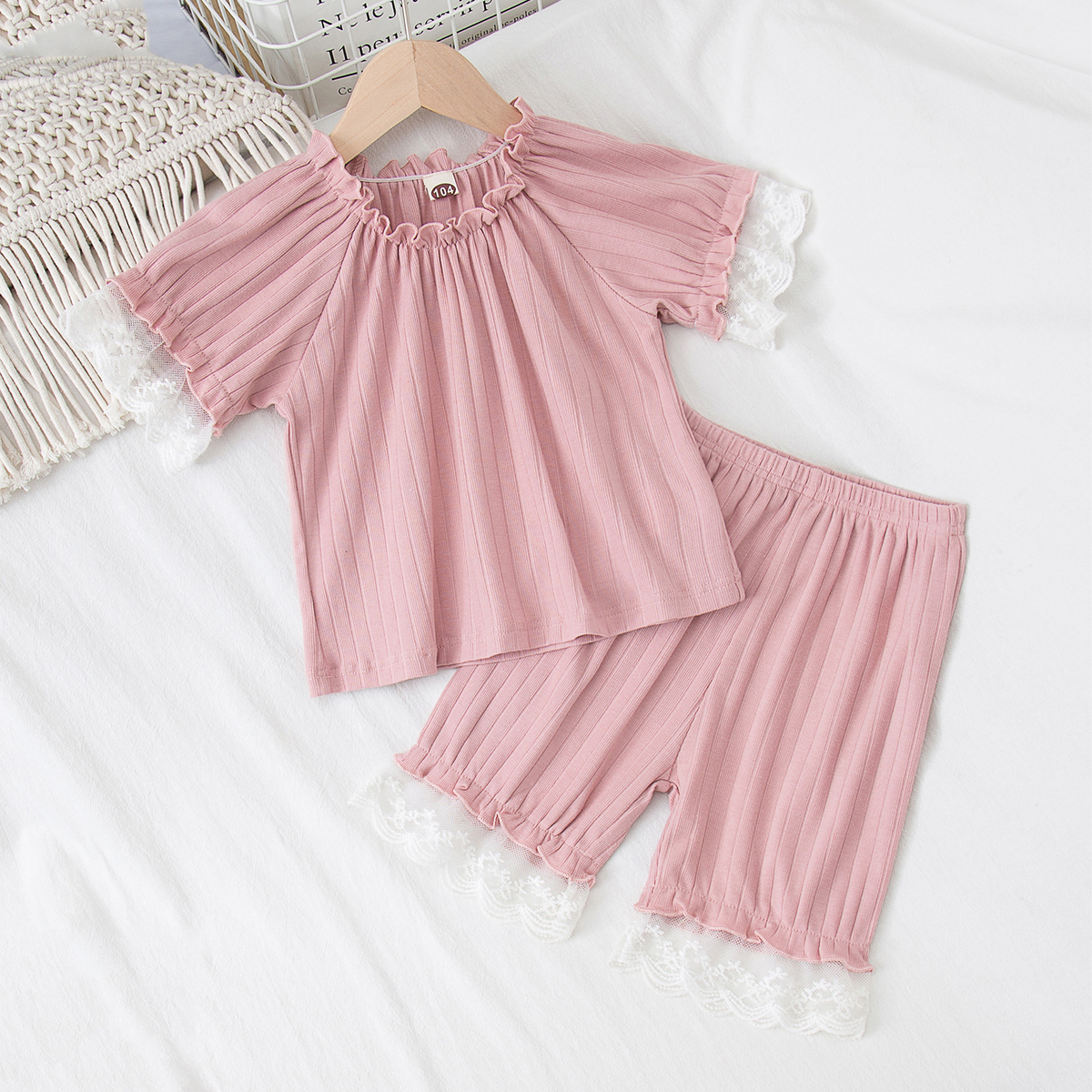 Toddler Girl Solid Cotton Pajamas Top & Short Wholesale