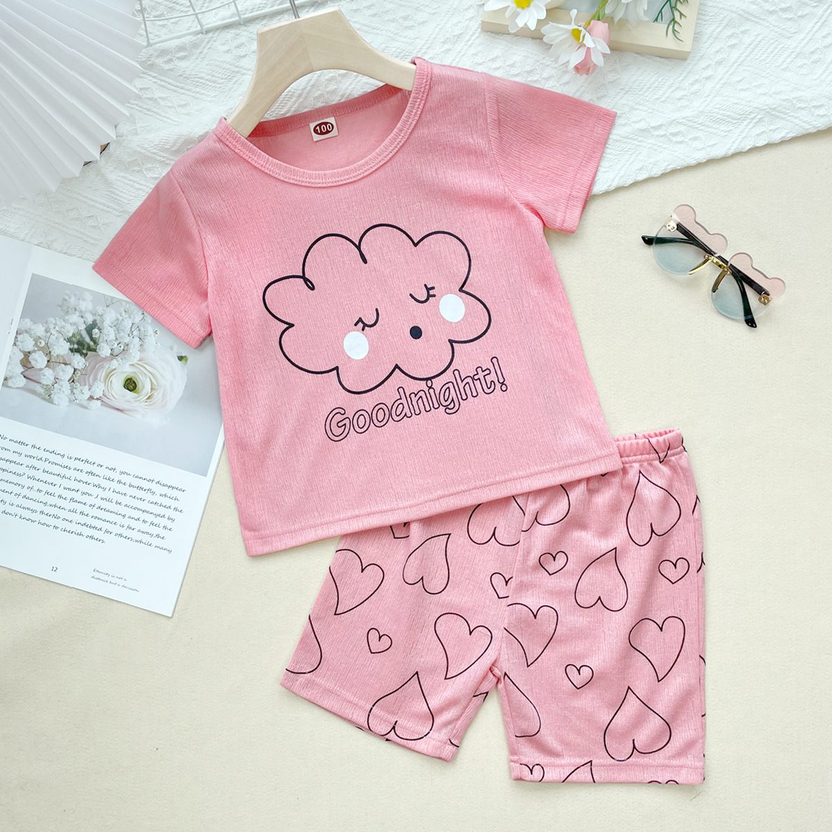 Toddler Girl Cute Pattern Cotton Pajamas Top & Short Wholesale
