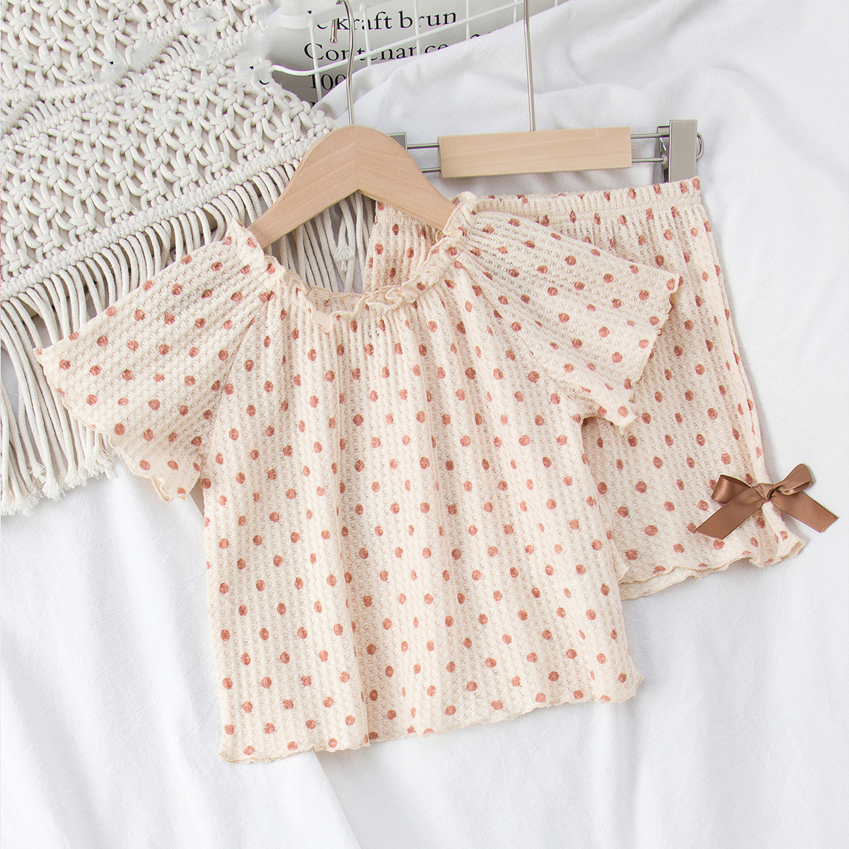 Toddler Girl Polka Color-block Pajamas Top & Short Wholesale