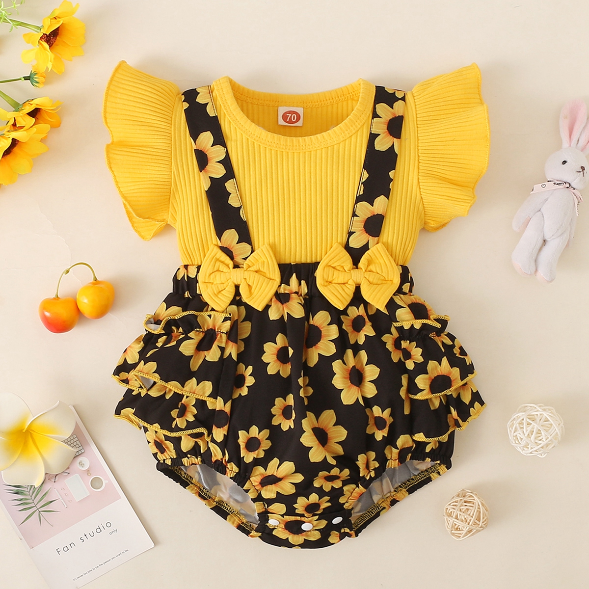 hibobi Girl Baby Floral Print Sweet Bow Bodysuit Wholesale
