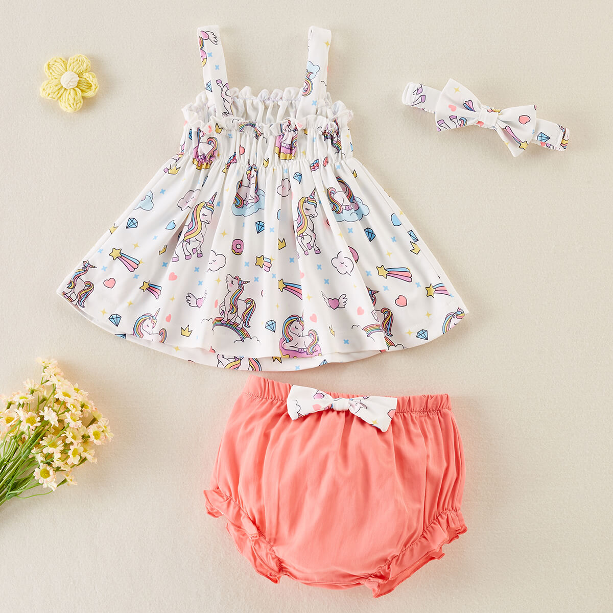 hibobi Baby Girl Cartoon Print 3-piece Sling Top & Shorts & Headband Wholesale