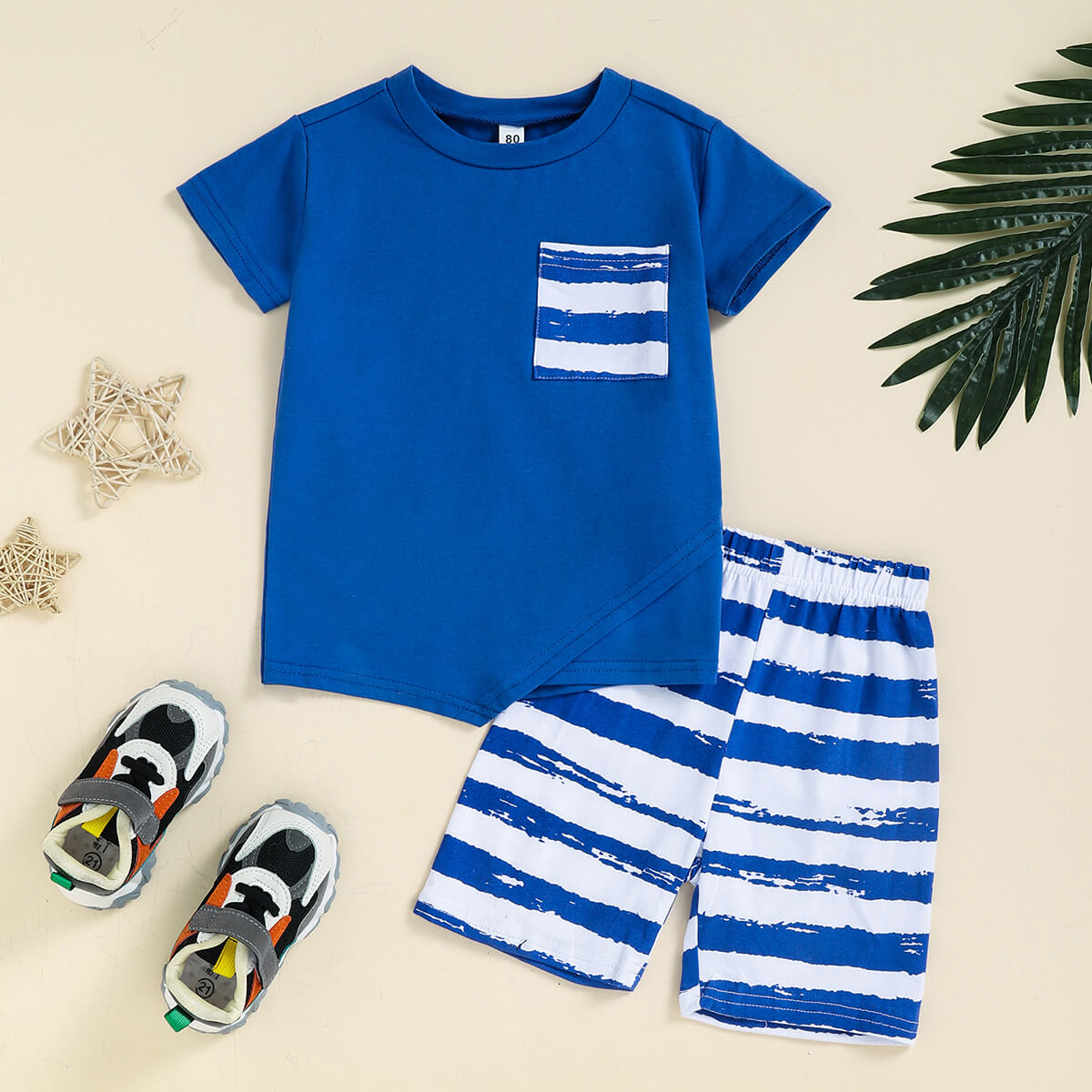 Toddler Boy Casual Striped Asymmetric T-shirt & Shorts Wholesale