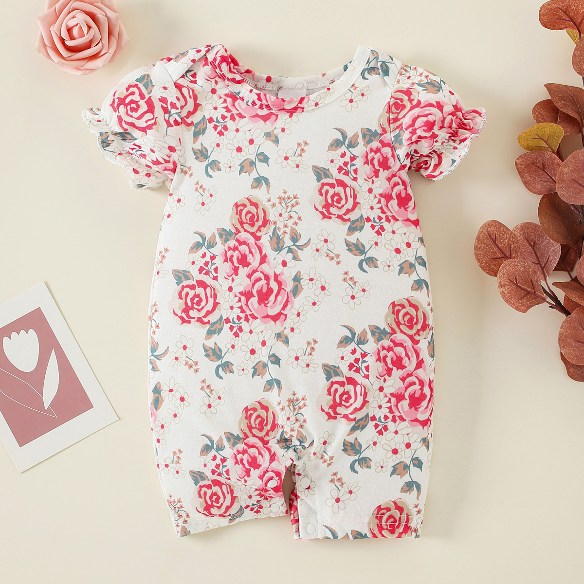 Baby Girl Floral Short Sleeve Jumpsuit & Shorts Wholesale