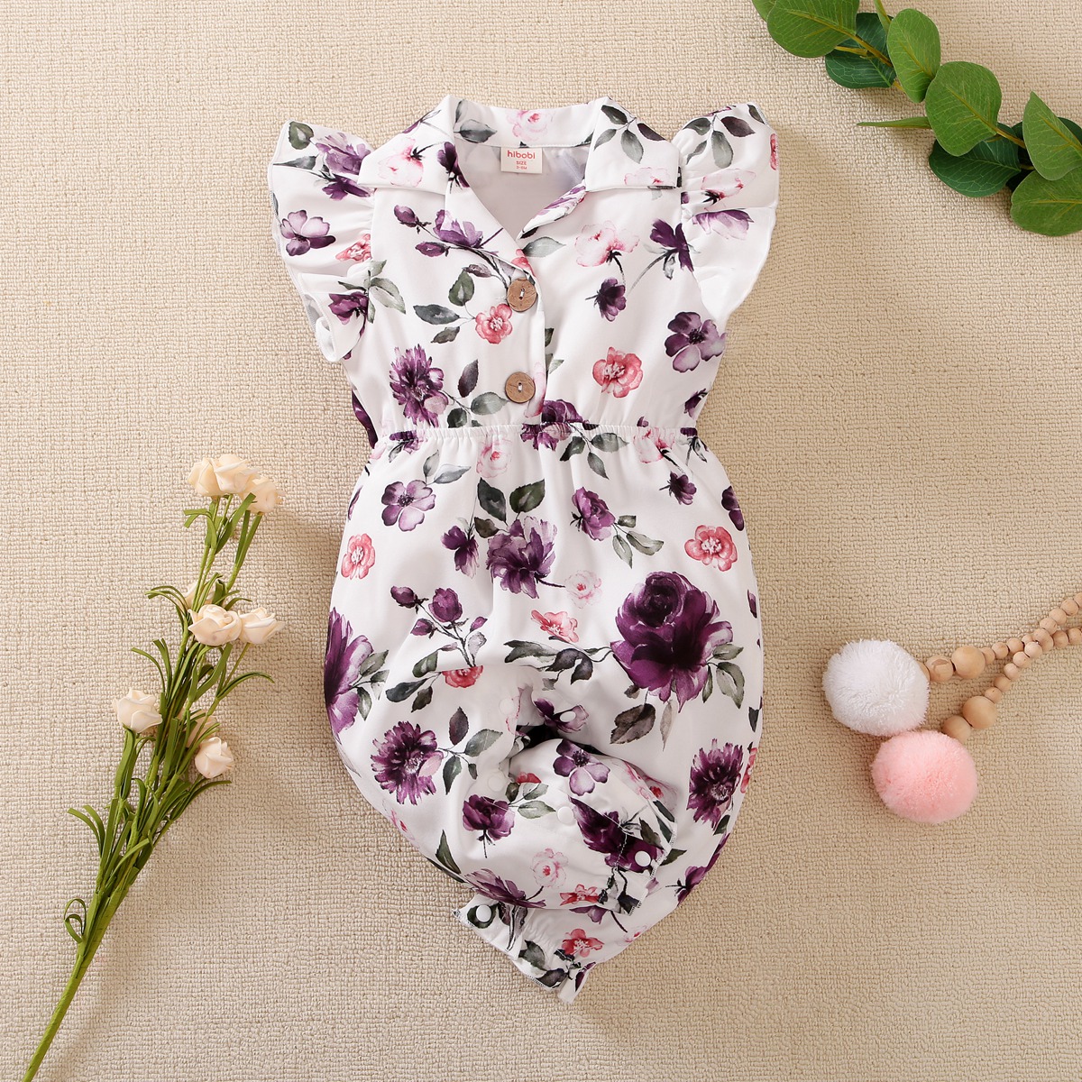 hibobi Baby Girl Floral Print Ruffle Jumpsuit Wholesale