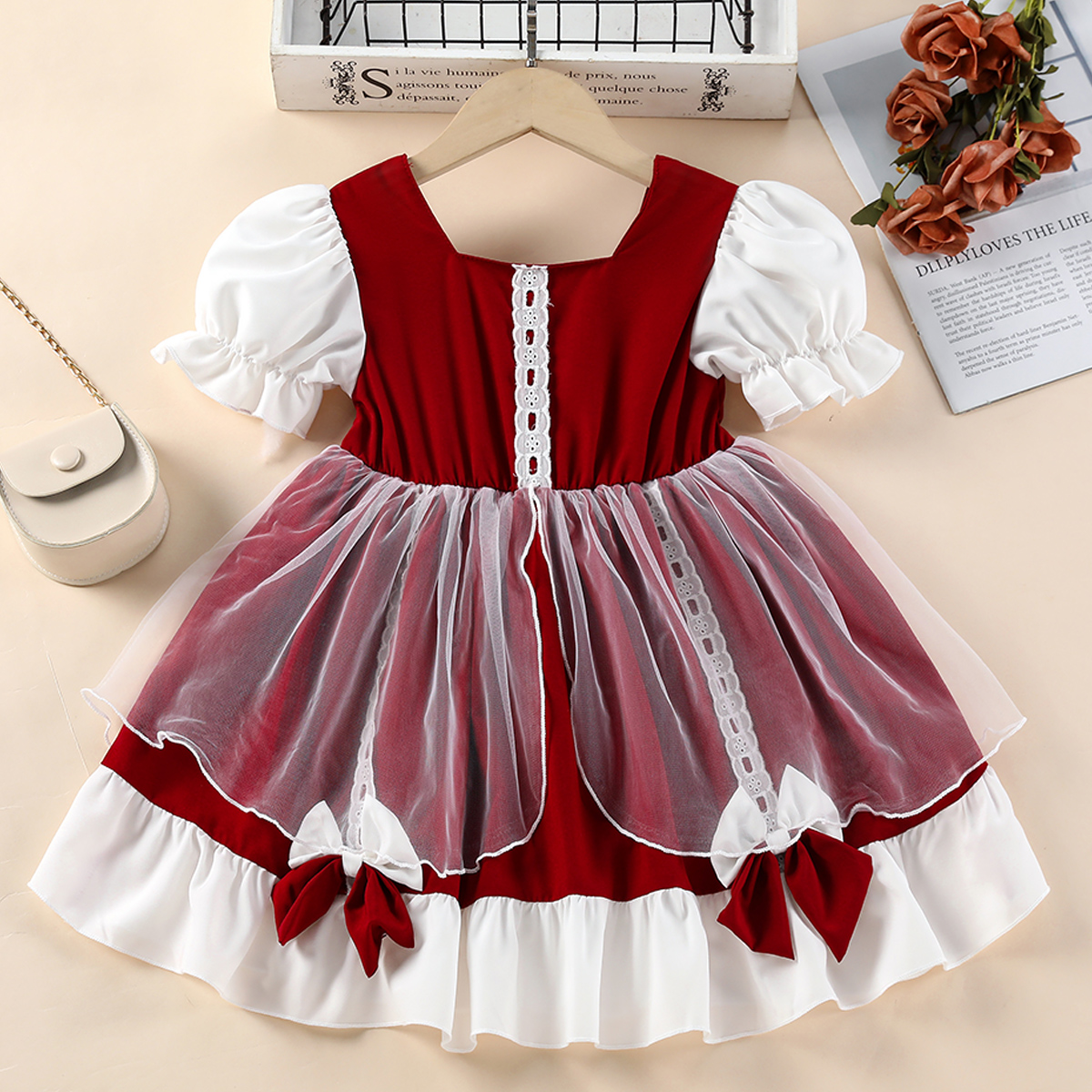 Toddler Girl Eleguard Vintage Tulle Press Bow Knot Decor Dress Wholesale