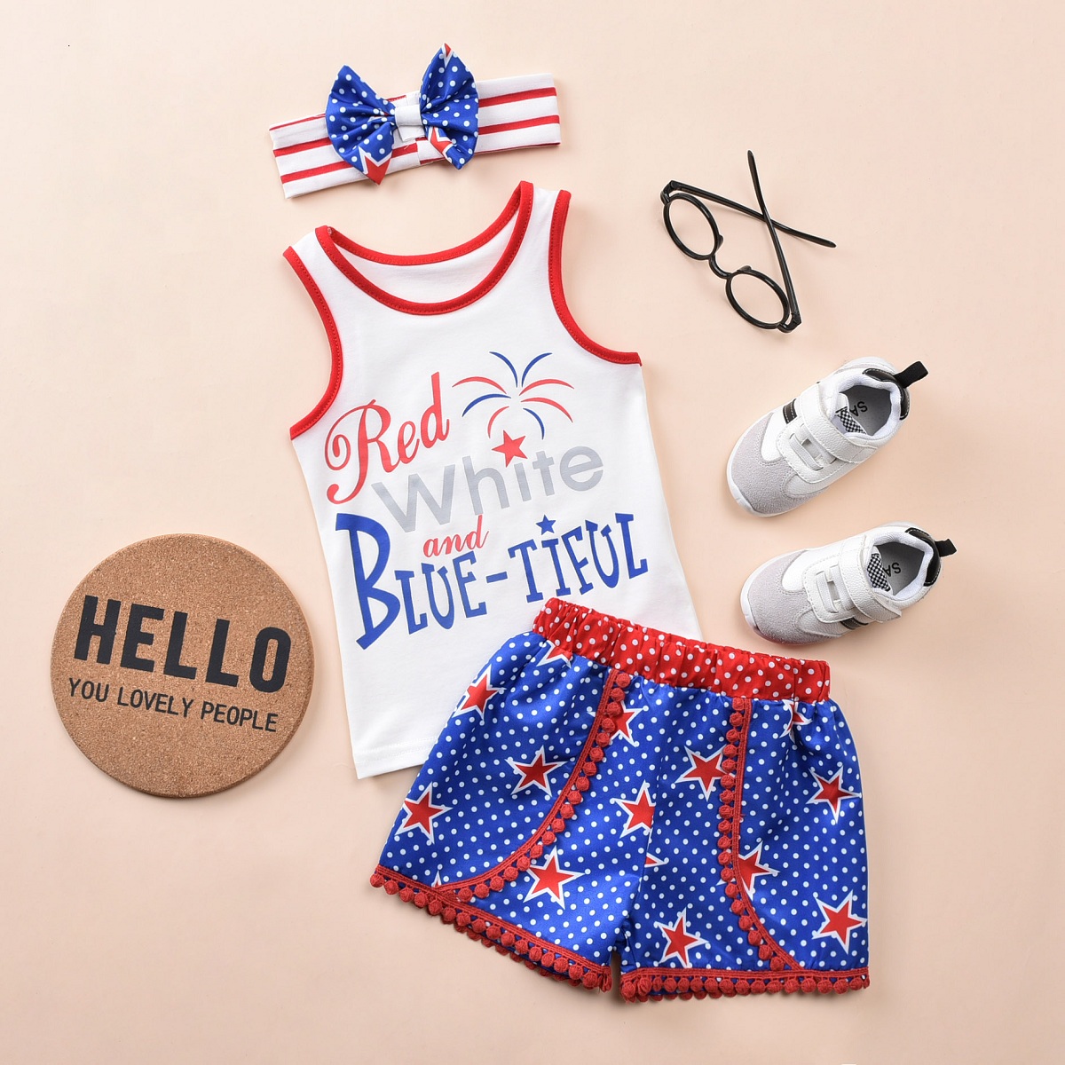 Toddler Girls Star Letter Color-block Top & Shorts & Headband Wholesale