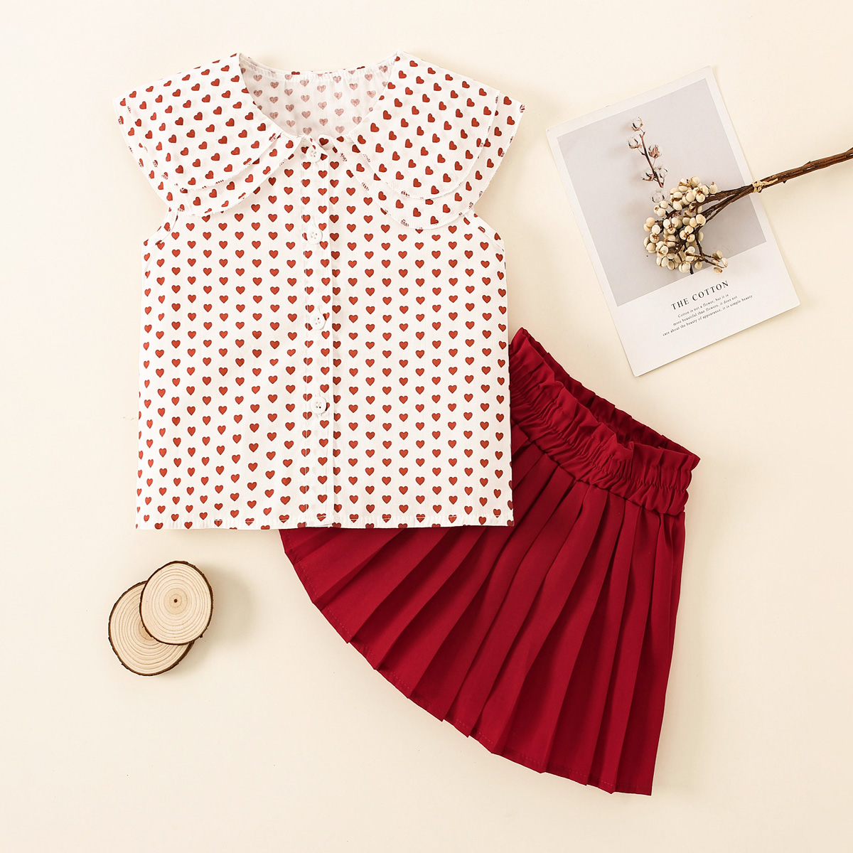 Toddler Girls Cotton Heart-shaped Top & Skirt Suit Wholesale