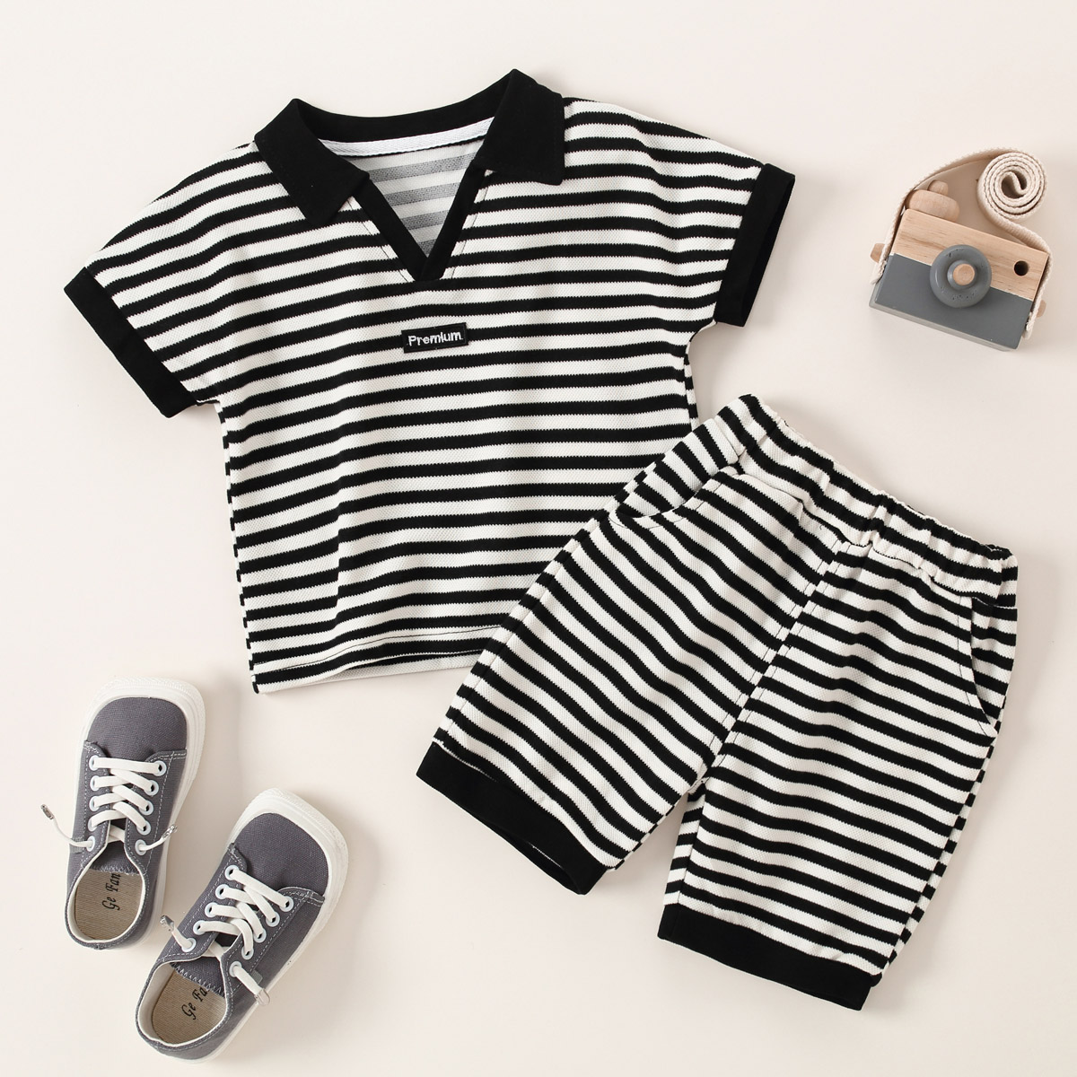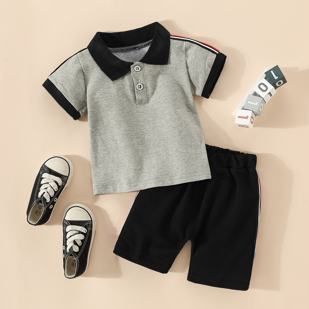 Toddler Boy Stripes Polo Collar Color-block Top & Shorts Wholesale