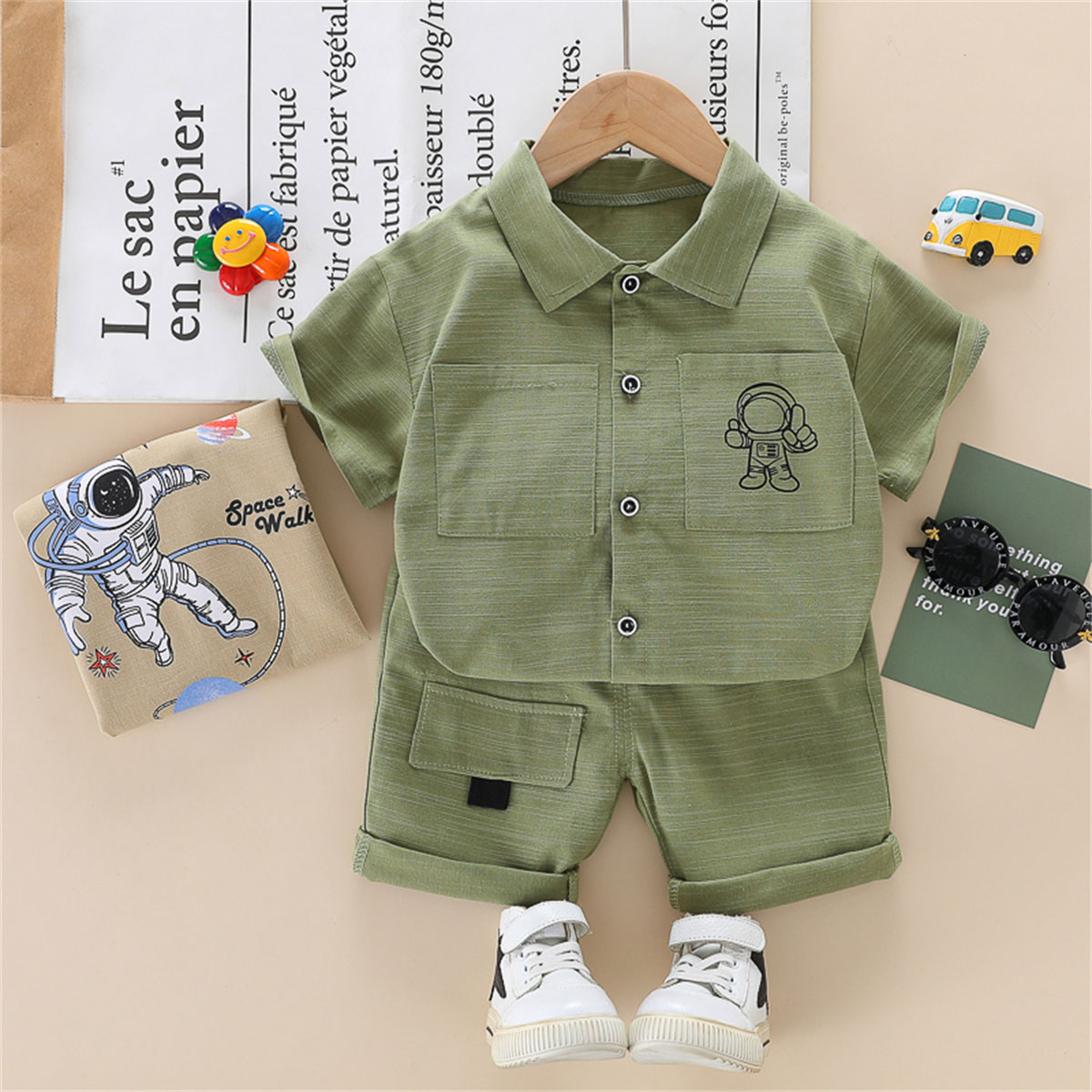 Toddler Boy Cartoon Lapel Astronaut Top & Shorts Wholesale