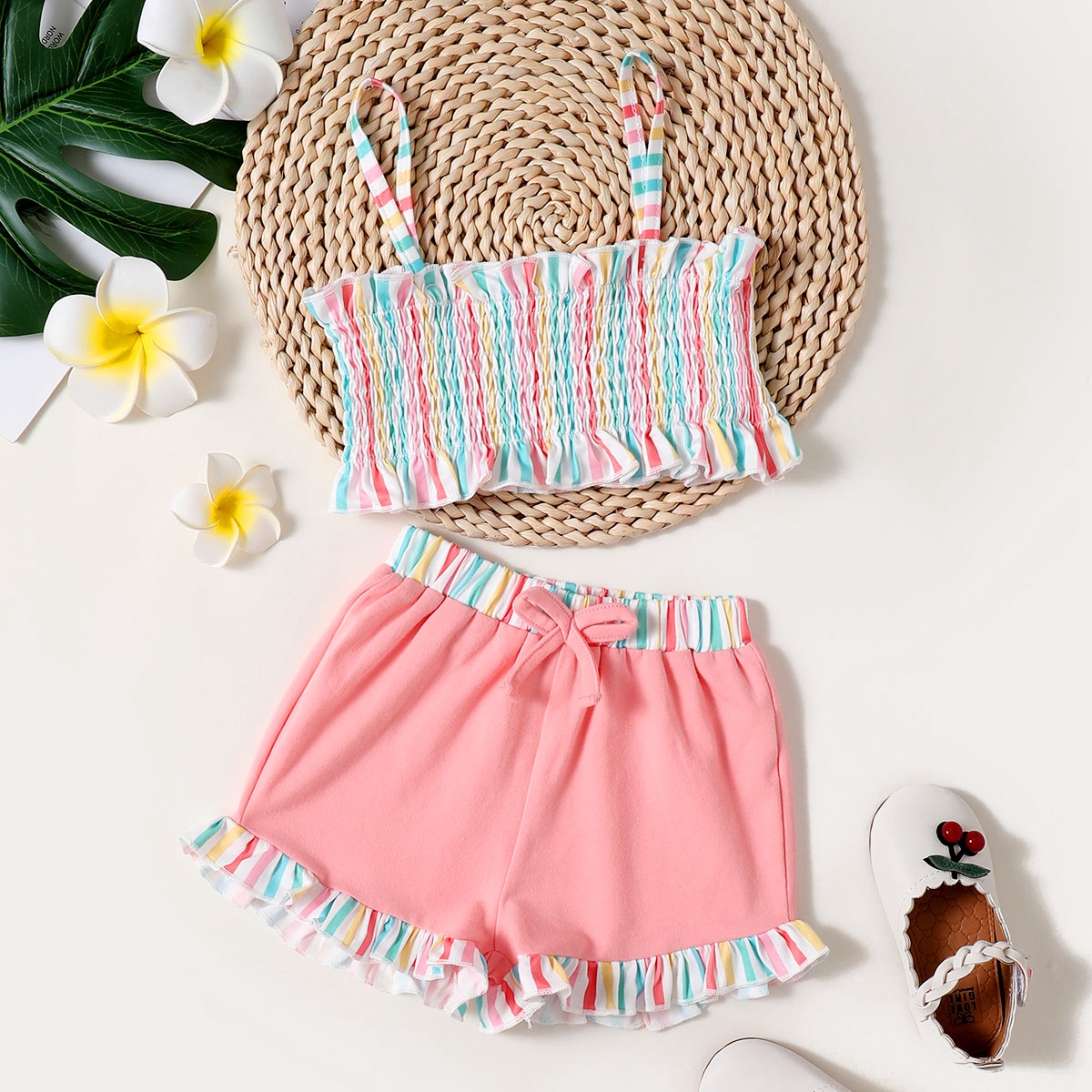 Toddler Girl Sweet Casual Multi Coloured Tank Top & Shorts Wholesale