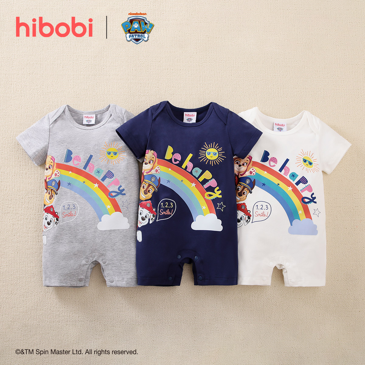 hibobi×PAW Patrol Baby Boy Cartoon Print Short Sleeve Cotton Jumpsuit Wholesale