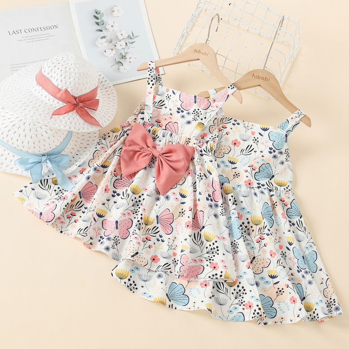 Toddler Girls Cotton Sweet Floral Bow Dress & Hat Wholesale