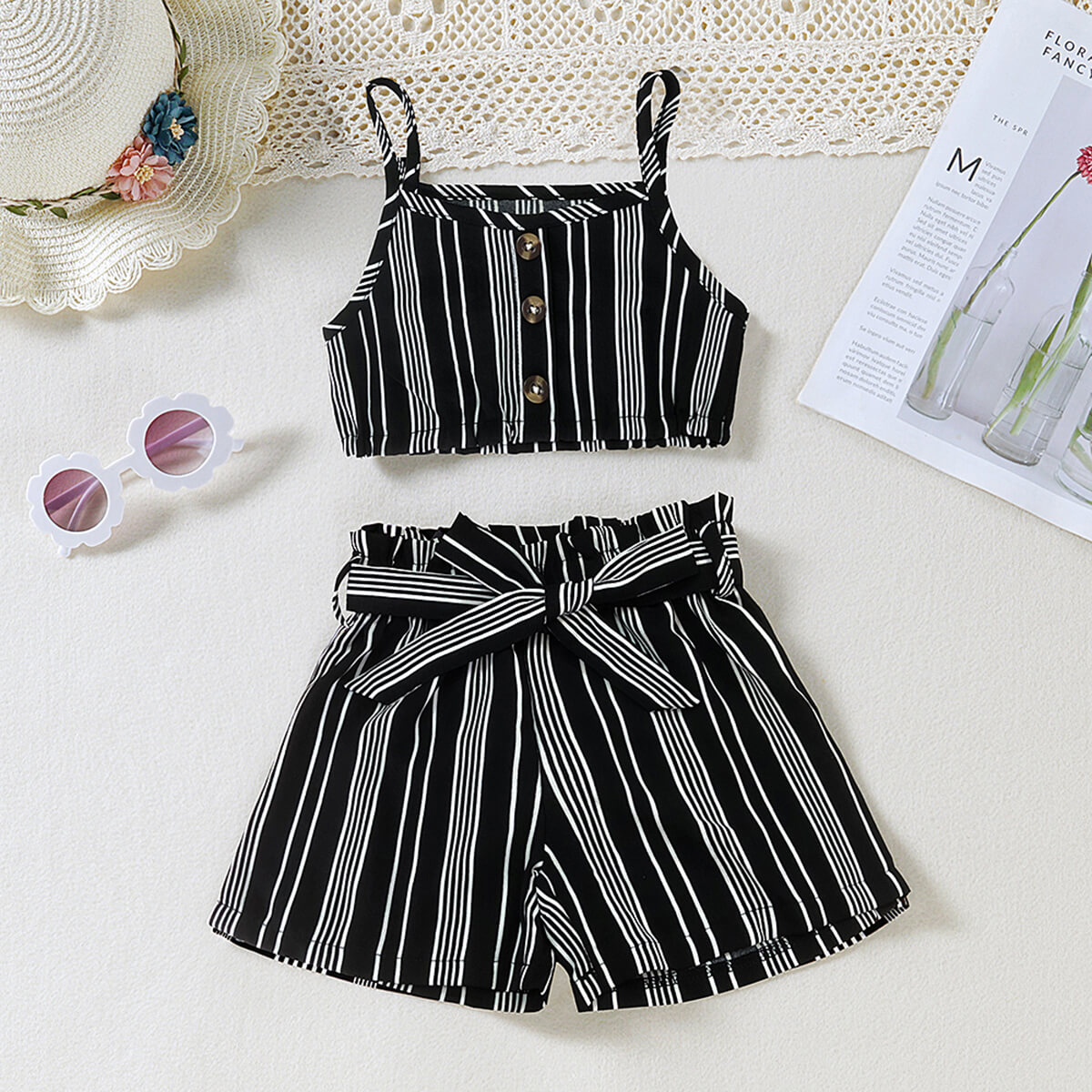 Toddler Girl Casual Eleguard Striped Vest Top & Shorts & Belt Wholesale