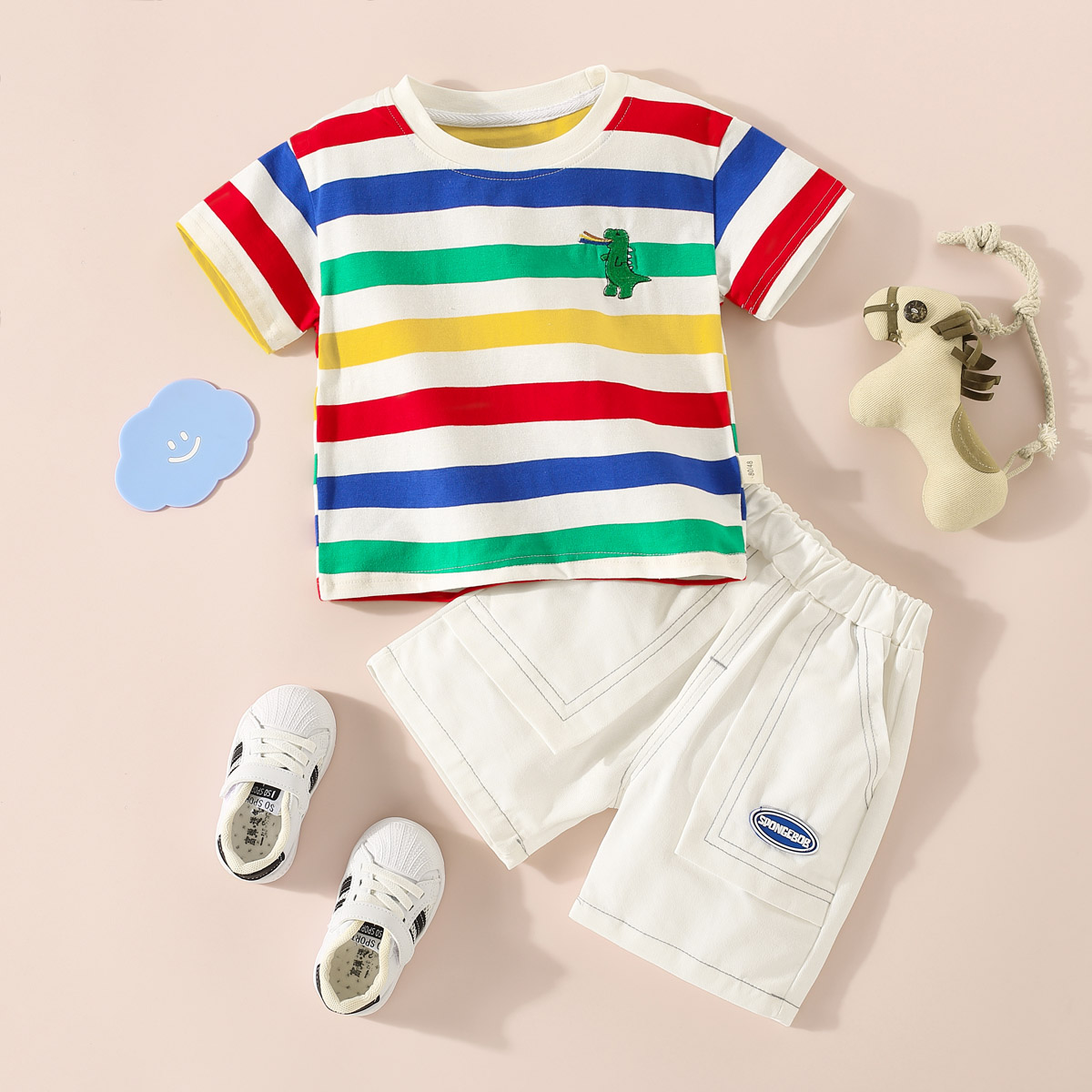 Toddler Boy Stripes Horizontal Stripes Color-block Top & Shorts Wholesale