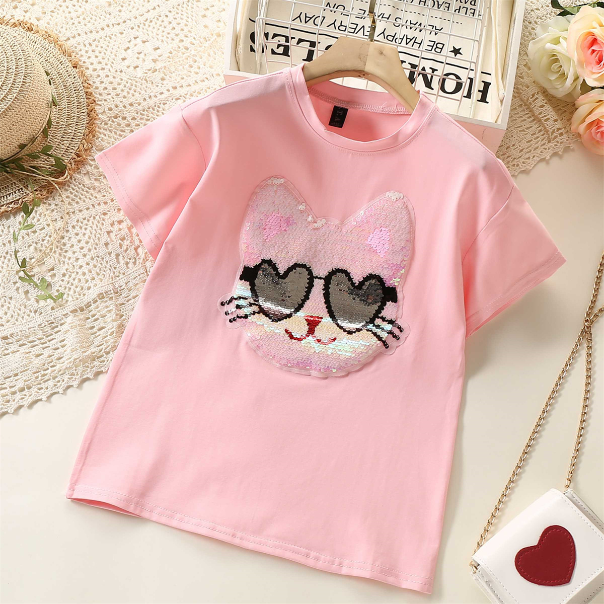Kids Girls Summer Cat Pattern T-shirt Wholesale
