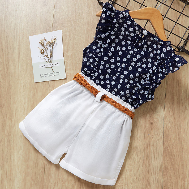 Toddler girl 2-piece Floral Sleeveless Polka Dot Printed T-Shirt and Shorts Set Wholesale