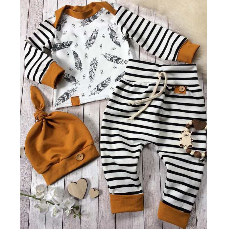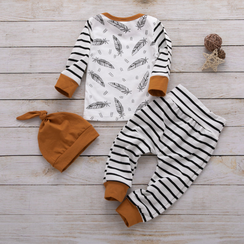 3-piece Feather Stripe Tee, Pants and Hat Set Wholesale