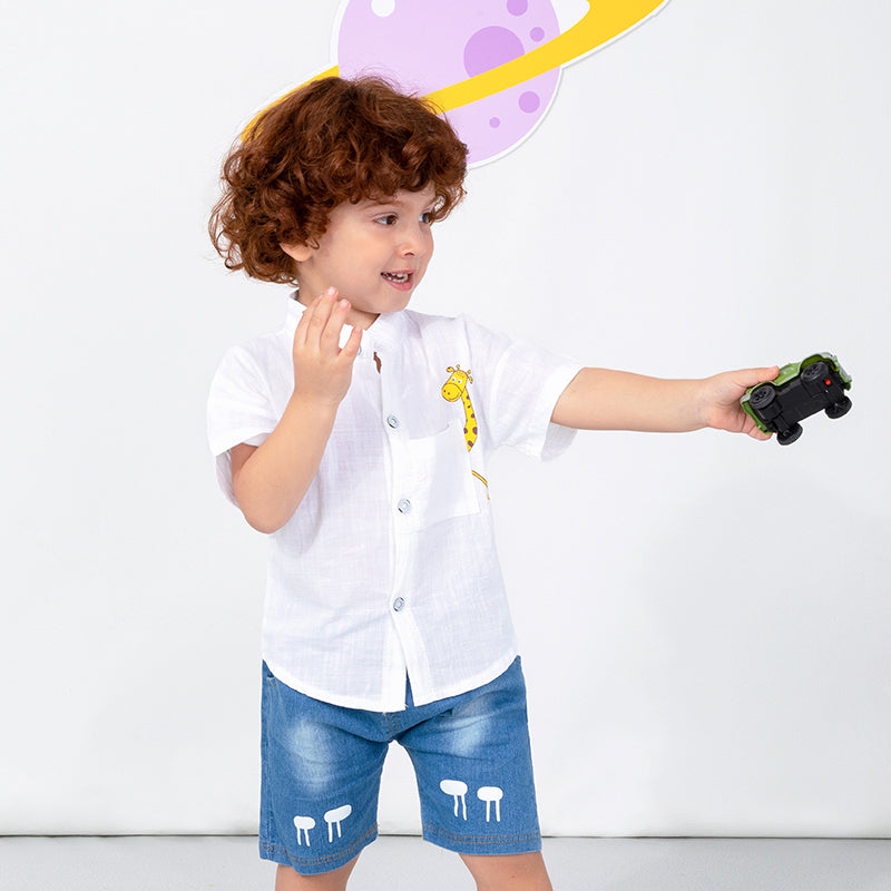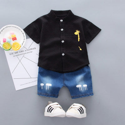 2-piece Deer Pattern Shirt & Short Jeans for Toddler Boy (No Shoes) Wholesale