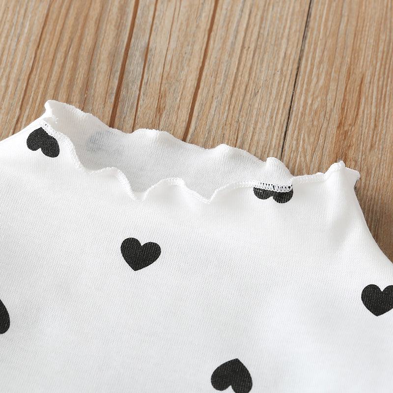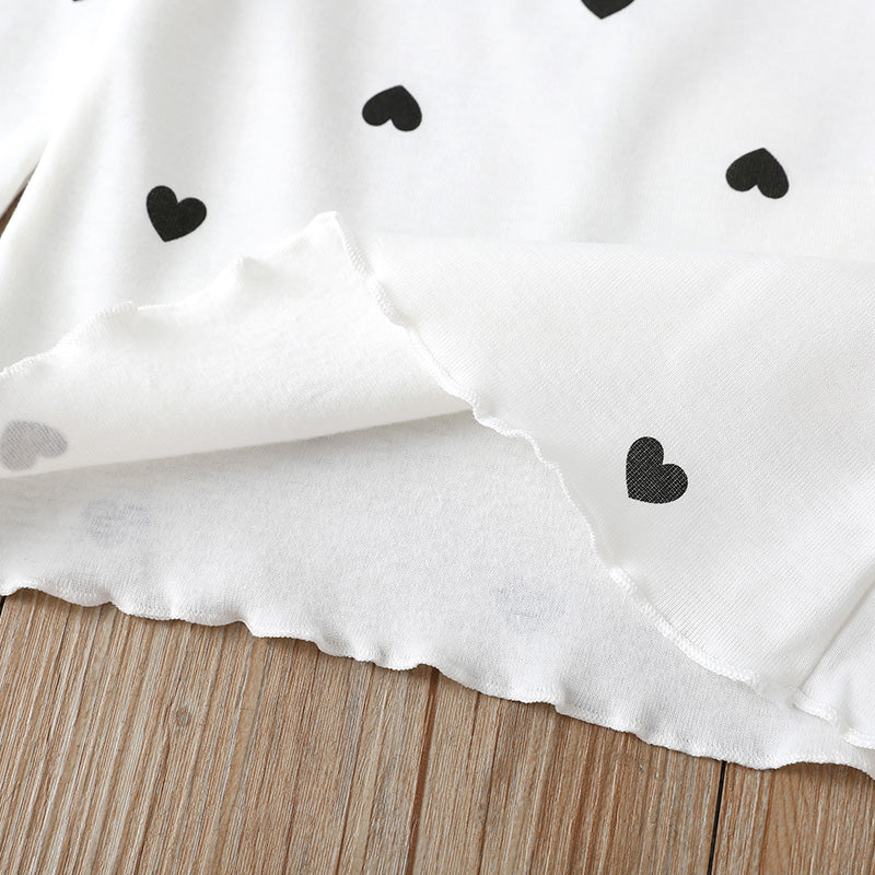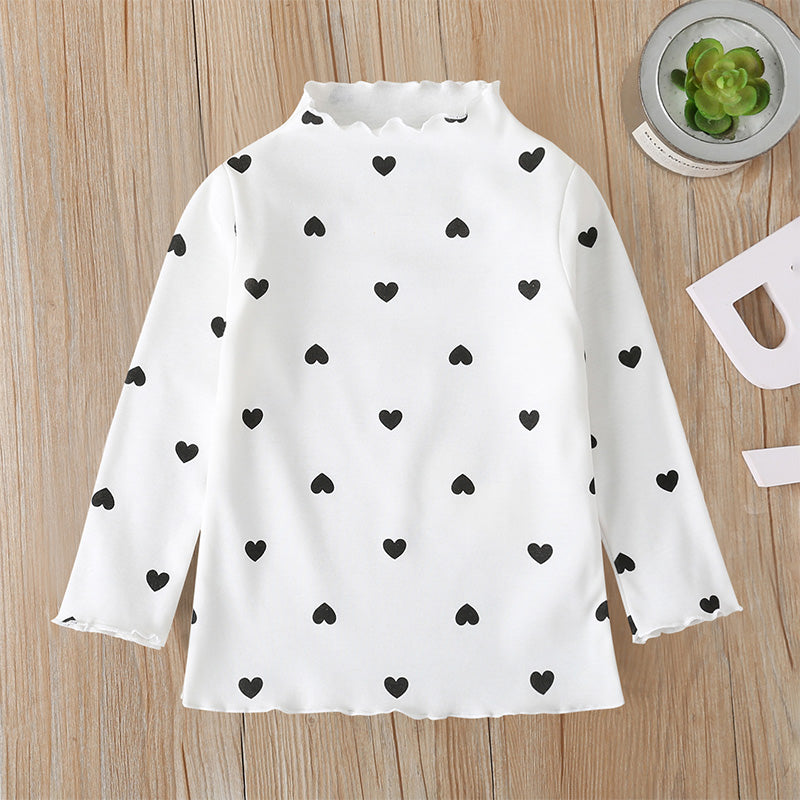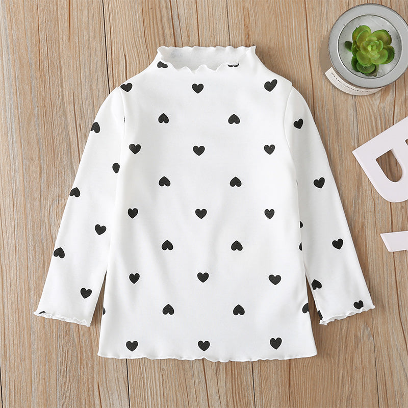 Toddler girl Cute Loving Heart Ruffled-neck T-shirt Wholesale