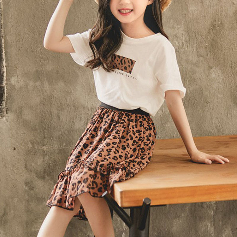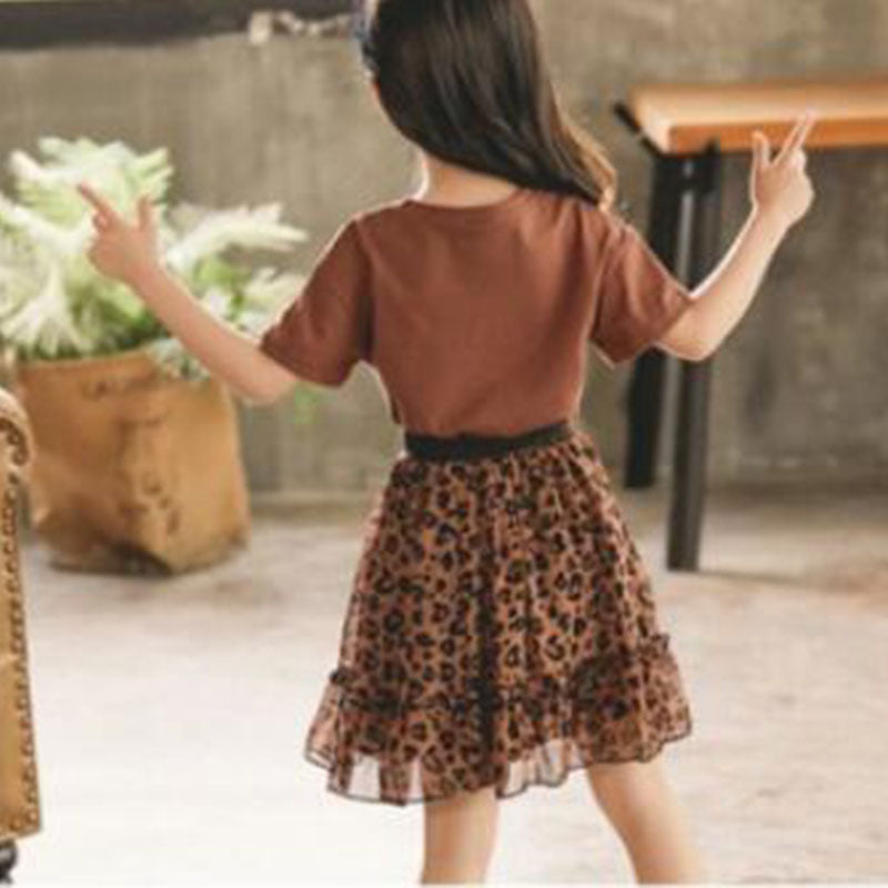 Girl Leopard Pattern Dress Set Wholesale