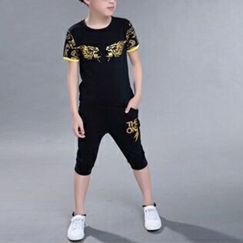 Boy Wing Print Geometric Pattern T-shirt & Capri Pants Wholesale