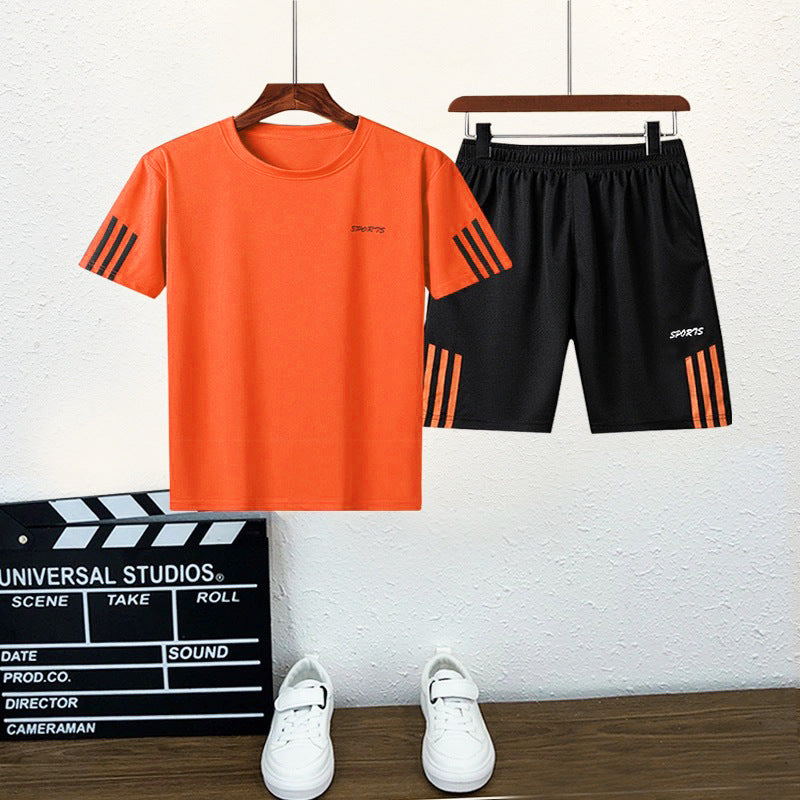 Boy Solid Color Letter Print T-Shirt & Shorts Wholesale