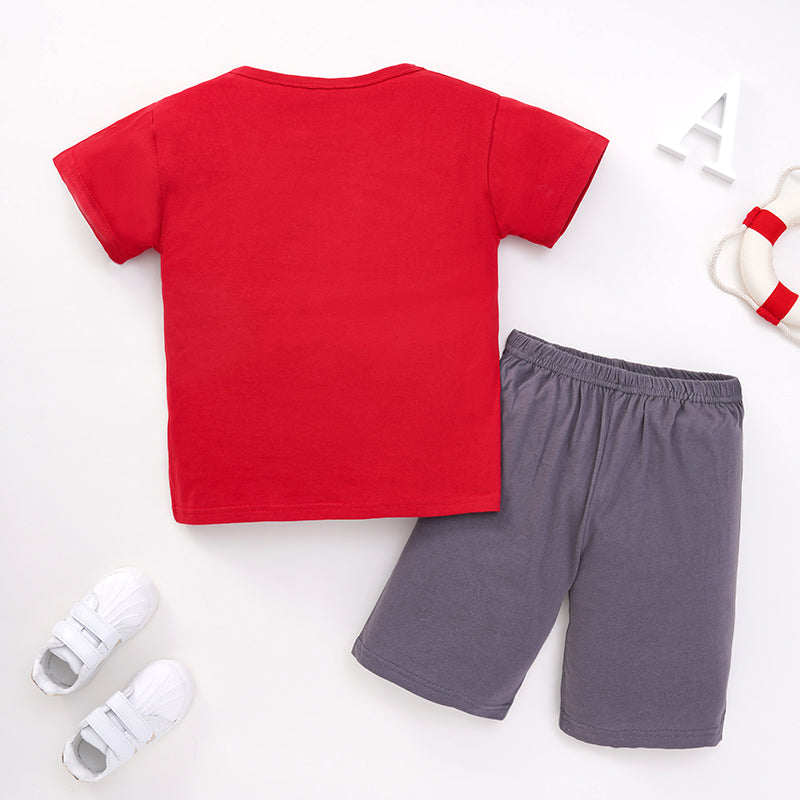 Boy Puppy Print Red T-shirt & Solid Color Shorts Wholesale