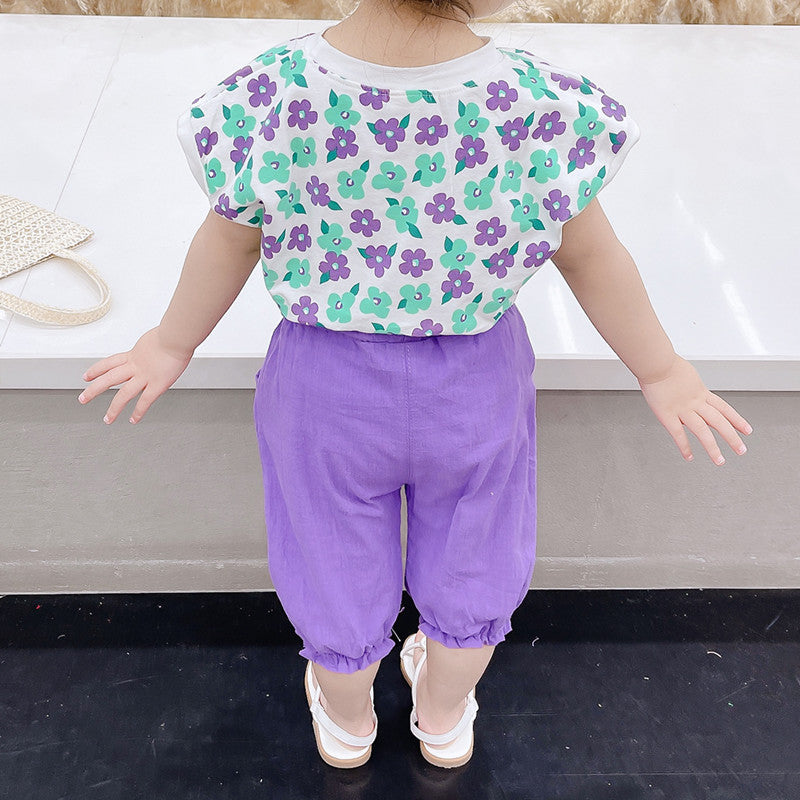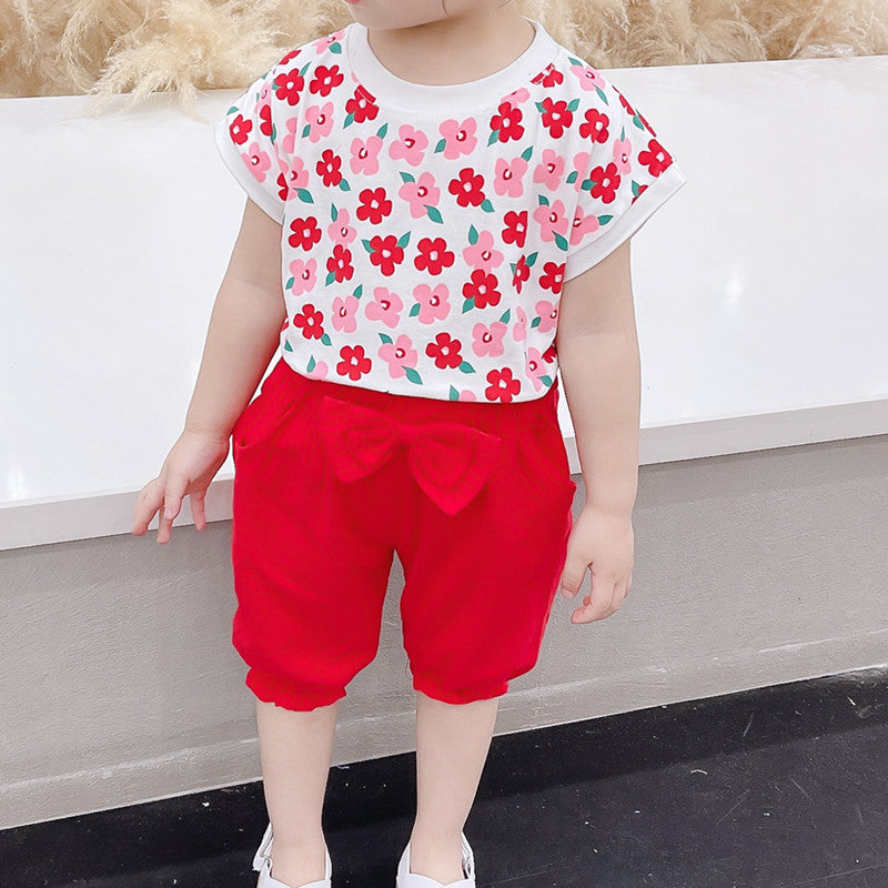 Toddler Girl Floral Print Top & Bowknot Pants Wholesale