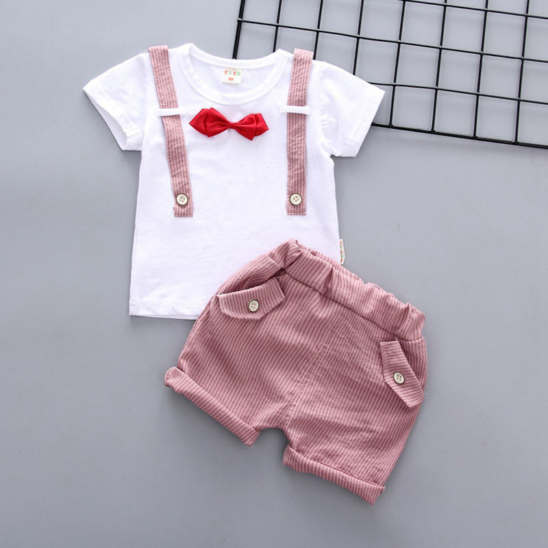Toddler Boy Bow Tie Decor T-shirt & Striped Shorts Wholesale