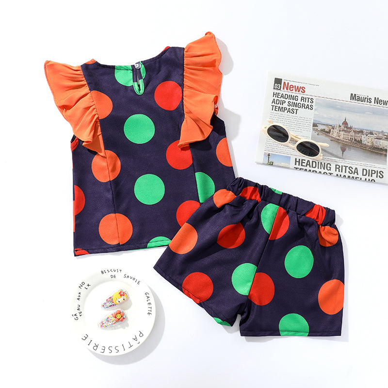 Toddler Girl Polka Color-block Top & Pants Suit Wholesale