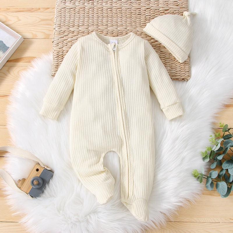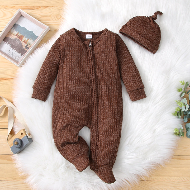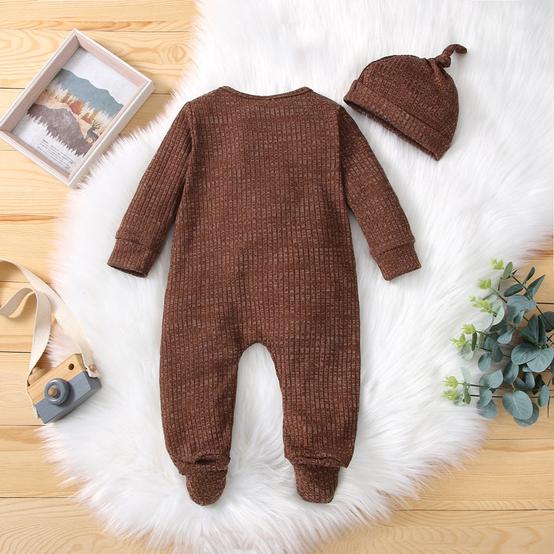 Baby Casual Solid Knitted Long Sleeve Jumpsuit & Hat Wholesale