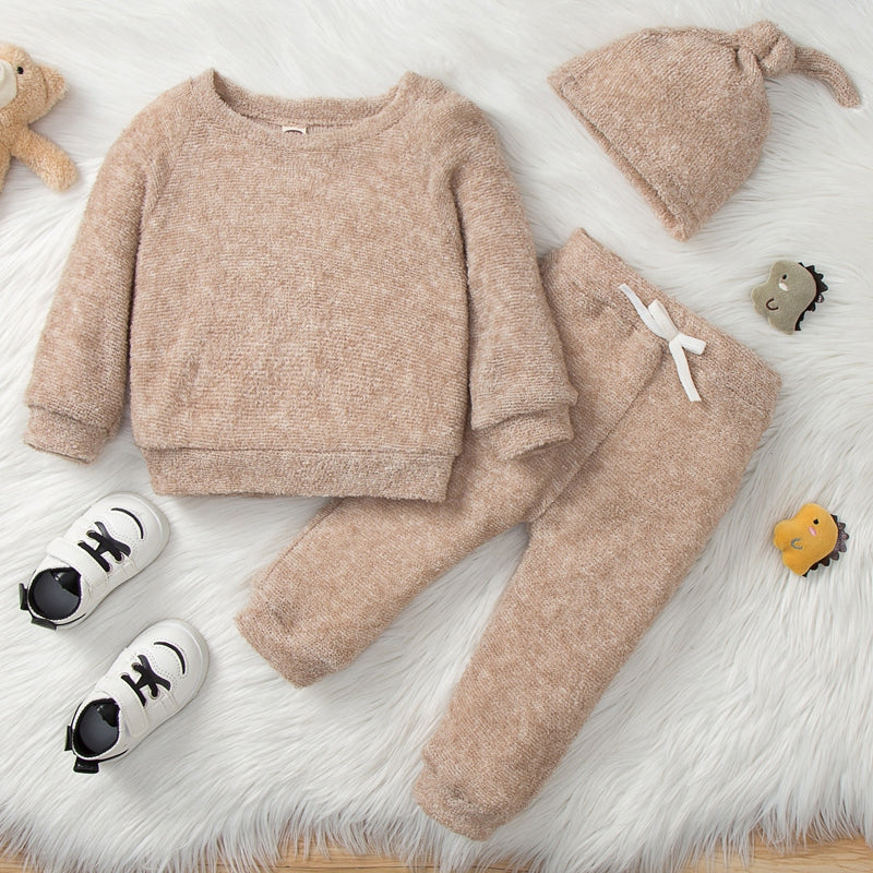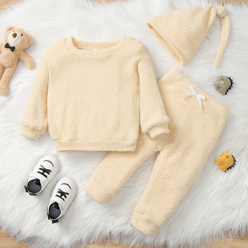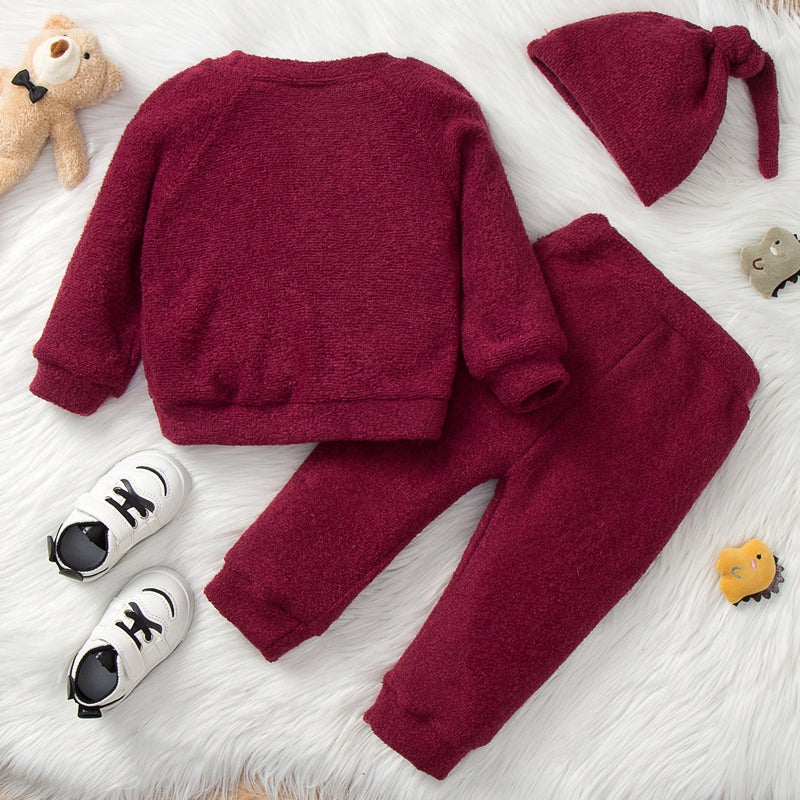 Baby Solid Long Sleeve Three-piece Sweatshirt Set Wholesale
